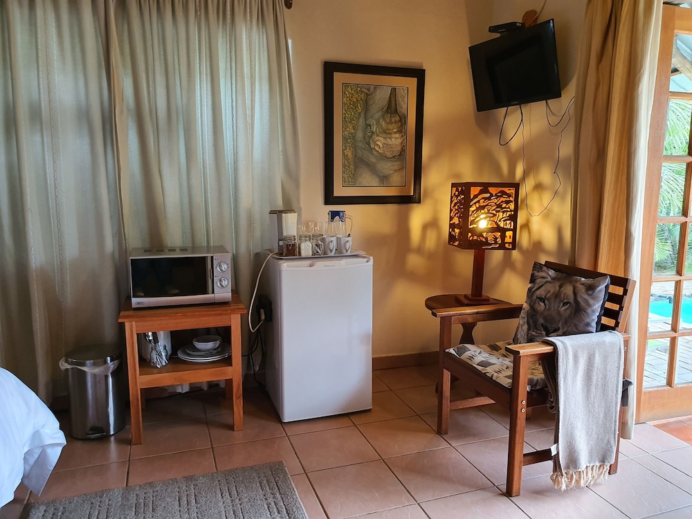W czasie pobytu w obiekcie takim jak A Traveller's Palm w mieście Phalaborwa znajdziesz się 10 minut samochodem od atrakcji takich jak Kruger National Park i Park Impala. Pensjonat B&B znajduje się 0,7 km od atrakcji takiej jak Centrum Zdrowia w Phalaborwa i 1,8 km od miejsca takiego jak Park przy ulicy Woyer. Poczuj się jak w domu w 6 klimatyzowanych pokojach, których wyposażenie to lodówka. Bezpłatny bezprzewodowy dostęp do internetu zapewni łączność ze światem, a telewizja satelitarna — rozrywkę. Udogodnienia obejmują zestawy do parzenia kawy i herbaty oraz sprzątanie codziennie. Płatne udogodnienia to transport z i na lotnisko. Dostępna jest także taka usługa jak bezpłatne parkowanie samodzielne. Zrelaksuj się w spa, które oferuje masaż, zabiegi na ciało i zabiegi na twarz. Ten pensjonat B&B oferuje takie udogodnienia jak bezpłatny bezprzewodowy dostęp do internetu, teren piknikowy i grill. Śniadanie pełne jest podawane codziennie od 7 do 9 za opłatą.