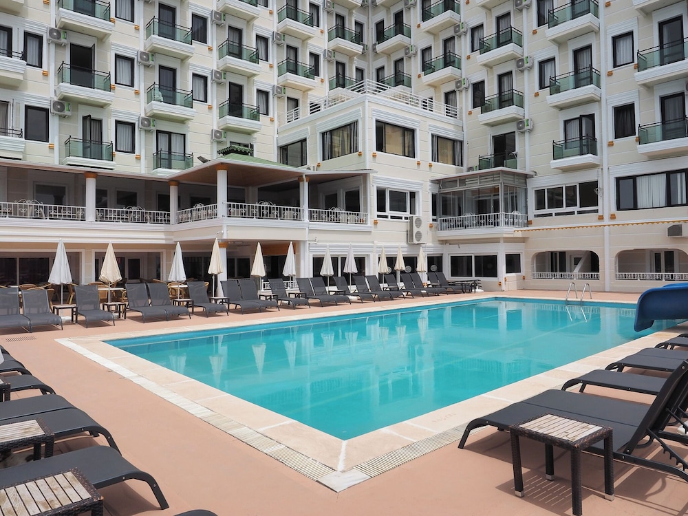 W czasie pobytu w obiekcie takim jak Sun Fire Beach Hotel w mieście Alanya znajdziesz się 15 minut samochodem od atrakcji takich jak Park wodny Alanya i Plaża w Mahmutlar. Hotel (all inclusive) znajduje się 14,9 km od atrakcji takiej jak Plaża Kleopatra i 1,9 km od miejsca takiego jak Zegar w Mahmutlar. Poczuj się jak w domu w 174 klimatyzowanych pokojach, których wyposażenie to telewizor LCD. Do pokoju przylega balkon. Bezprzewodowy dostęp do internetu (płatny) zapewni łączność ze światem, a telewizja kablowa — rozrywkę. Wyposażenie łazienki: prysznic i suszarki do włosów. Odległości są podane z dokładnością do 0,1 kilometra.
