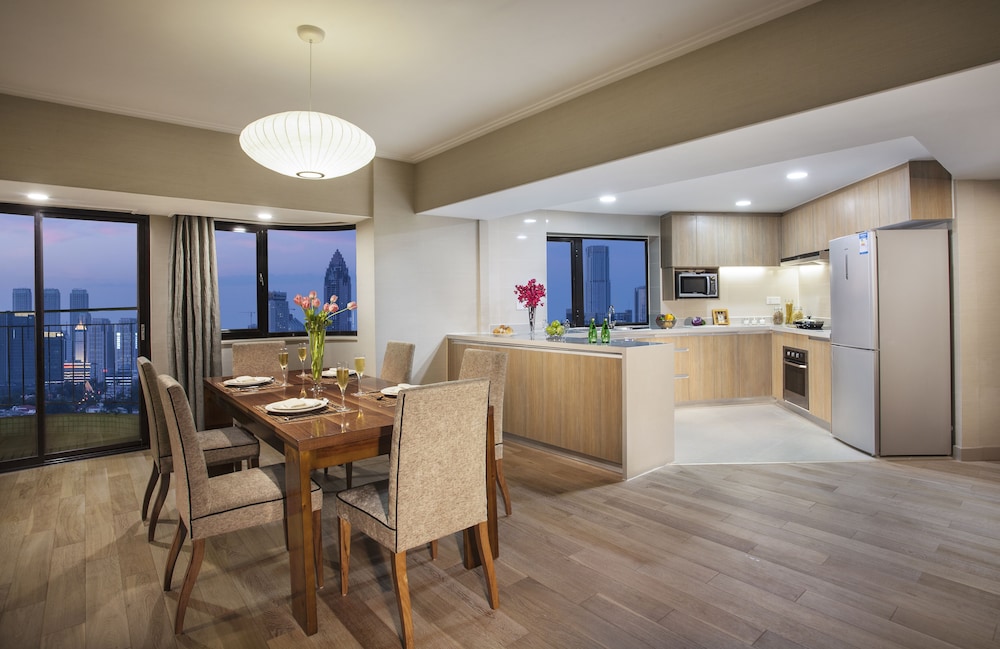 W czasie pobytu w obiekcie takim jak Somerset Olympic Tower Tianjin znajdziesz się w samym centrum miasta Tianjin, jedynie 3 minut piechotą od atrakcji takiej jak Tianjin Medical University i 13 minut piechotą od miejsca takiego jak Uniwersytet w Nankai. Aparthotel (z atmosferą przyjazną rodzinom) znajduje się 1,9 km od atrakcji takiej jak Katedra św. Józefa i 2,1 km od miejsca takiego jak Uniwersytet w Tiencinie. Poczuj się jak w domu w 185 pokojach, których wyposażenie to kuchnie (lodówka i płyta kuchenna). Wyposażenie łóżek to pillowtop. Bezpłatny przewodowy i bezprzewodowy dostęp do internetu zapewni łączność ze światem, a odtwarzacz DVD i telewizja satelitarna — rozrywkę. Udogodnienia obejmują telefon oraz sejfy i biurka. Udogodnienia biznesowe to bezpłatny przewodowy dostęp do internetu, centrum biznesowe oraz wynajem limuzyn i samochodów. Jeżeli planujesz spotkanie w mieście Tianjin, aparthotel oferuje pomieszczenia konferencyjne oraz sala konferencyjna o łącznej powierzchni 30 m kw. (323 stopy kwadratowe). Płatne udogodnienia to transport z i na lotnisko (całą dobę). Dostępna jest także taka usługa jak bezpłatne parkowanie samodzielne. Dostępne udogodnienia rekreacyjne to basen kryty, sauna oraz centrum fitness. Ten aparthotel oferuje takie udogodnienia jak bezpłatny bezprzewodowy dostęp do internetu, obsługa portierska i sala/salon gier. Przekąś coś w restauracji Salsa Restaurant, jednej z 4 restauracji w obiekcie takim jak aparthotel. Możesz też zostać w pokoju i skorzystać z obsługi pokojowej w określonych godzinach lub pójść po przekąskę do kawiarni. Śniadanie w formie bufetu jest podawane codziennie od 6:30 do 10 za opłatą. Do wiadomości naszych gości podajemy oceny obiektów oparte na naszym systemie oceniania.