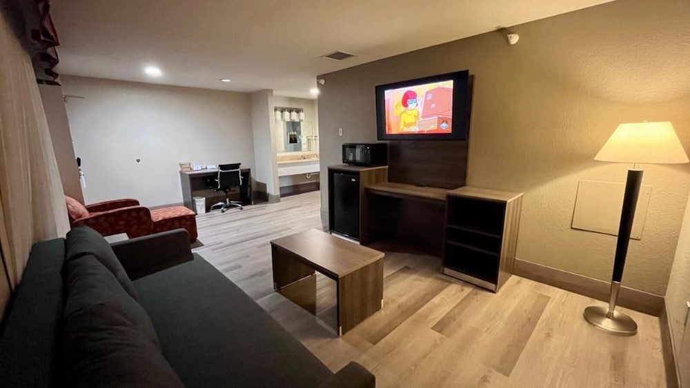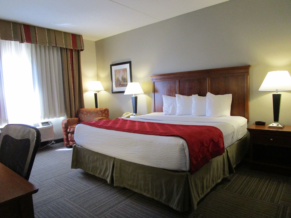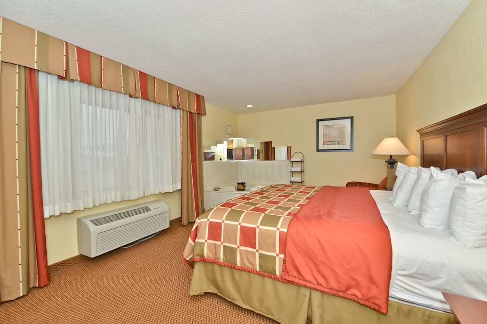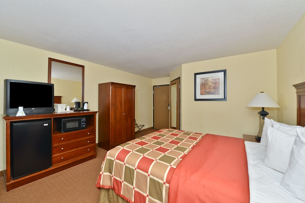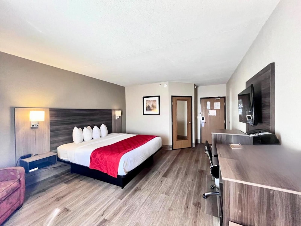 W czasie pobytu w obiekcie takim jak Ramada by Wyndham Platte City KCI Airport w mieście Platte City, znajdziesz się 18,6 km od miejsca takiego jak Fort Leavenworth i 25,5 km od atrakcji takiej jak Ośrodek narciarski Snow Creek. Hotel znajduje się 38,2 km od atrakcji takiej jak LEGOLAND® Discovery Center i 42,1 km od miejsca takiego jak Worlds of Fun. Poczuj się jak w domu w 71 klimatyzowanych pokojach, których wyposażenie to lodówka i kuchenka mikrofalowa. Bezpłatny bezprzewodowy dostęp do internetu zapewni łączność ze światem, a telewizor płaskoekranowy i kablowa — rozrywkę. Prywatna łazienka — wyposażenie: wanna połączona z prysznicem, bezpłatne przybory toaletowe i suszarki do włosów. Udogodnienia obejmują telefon oraz biurka i żelazka i deski do prasowania. Udogodnienia biznesowe to centrum biznesowe, ekspresowe wymeldowanie oraz recepcja całodobowa. Jeżeli planujesz spotkanie w mieście Platte City, hotel oferuje pomieszczenia konferencyjne oraz sala konferencyjna o łącznej powierzchni 31 m kw. (334 stopy kwadratowe). Udogodnienia na miejscu to bezpłatne parkowanie samodzielne. Dostępne udogodnienia rekreacyjne to basen kryty i centrum fitness. Ten hotel oferuje również udogodnienia takie jak bezpłatny bezprzewodowy dostęp do internetu, kominek w holu i sala bankietowa.