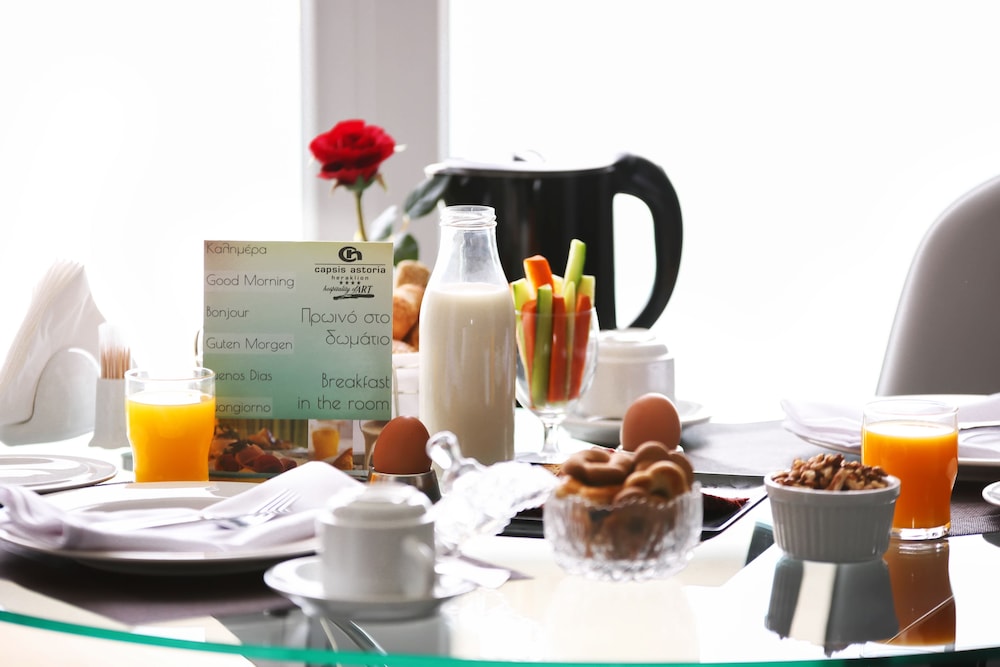 W czasie pobytu w obiekcie takim jak Capsis Astoria Heraklion Hotel znajdziesz się w samym centrum miasta Heraklion bardzo blisko atrakcji takiej jak Muzeum Archeologiczne w Heraklionie i 15 minut spacerem od miejsca takiego jak Port Heraklion. Hotel (z atmosferą przyjazną rodzinom) znajduje się 6,3 km od atrakcji takiej jak Pałac Knossos i 0,1 km od miejsca takiego jak Ulica Handlowa Dedalou. Poczuj się jak w domu w 131 klimatyzowanych pokojach, których wyposażenie to lodówka i Telewizory Smart TV. Bezpłatny bezprzewodowy dostęp do internetu zapewni łączność ze światem, a telewizja satelitarna — rozrywkę. Prywatna łazienka — wyposażenie: prysznic, bezpłatne przybory toaletowe i suszarki do włosów. Udogodnienia obejmują telefon oraz sejfy i biurka. Udogodnienia biznesowe to całodobowe centrum biznesowe, wynajem limuzyn i samochodów oraz usługi pralni chemicznej. Jeżeli planujesz spotkanie w mieście Heraklion, hotel oferuje centrum konferencyjne oraz 3 sale konferencyjne o łącznej powierzchni 432 m kw. (4650 stopy kwadratowe). Dostępne udogodnienia rekreacyjne to całodobowe centrum fitness i sezonowy basen odkryty. Ten hotel oferuje takie udogodnienia jak bezpłatny bezprzewodowy dostęp do internetu, obsługa portierska i usługi weselne. Zachwyć się kuchnią taką jak kuchnia śródziemnomorska w restauracji Cafe Capsis, jednej z 3 restauracji w obiekcie takim jak hotel. Możesz też zostać w pokoju i skorzystać z całodobowej obsługi pokojowej lub pójść po przekąskę do 2 kawiarni. Ożywcze napoje znajdziesz w jednym z lokali: bar przy basenie i 2 bary/salony klubowe. Śniadanie w formie bufetu jest podawane codziennie od 7 do 10:30 za opłatą.