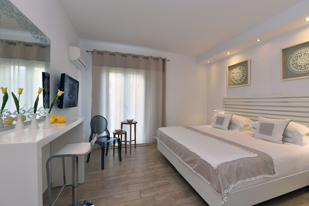 W czasie pobytu w obiekcie takim jak Apollon Boutique Hotel znajdziesz się w samym centrum miasta Paros, 15 minut od atrakcji takich jak Port w Parikii i Plaża Livadia. Hotel (przy plaży) znajduje się 33,3 km od atrakcji takiej jak Port w Naksos i 39,4 km od miejsca takiego jak Plaża Agios Prokopios. Poczuj się jak w domu w 27 oryginalnie umeblowane pokojach, których wyposażenie to lodówka i telewizor LCD. Wyposażenie łóżek to Select Comfort oraz pościel premium. Bezpłatny bezprzewodowy dostęp do internetu zapewni łączność ze światem, a telewizja satelitarna — rozrywkę. Wyposażenie łazienki: prysznic, bezpłatne przybory toaletowe i suszarki do włosów. Odległości są podane z dokładnością do 0,1 kilometra.