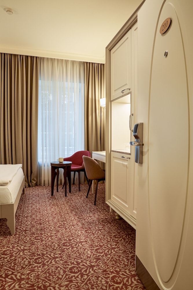 W czasie pobytu w obiekcie takim jak Ratonda Centrum Hotels znajdziesz się w samym centrum miasta Wilno, bardzo blisko atrakcji takiej jak Prospekt Giedymina i 4 minut piechotą od miejsca takiego jak Litewska Biblioteka Narodowa im. Martynasa Mazvydasa. Hotel znajduje się 0,3 km od atrakcji takiej jak Budynek Sejmu Republiki Litewskiej i 0,4 km od miejsca takiego jak Plac Książęcy. Poczuj się jak w domu w 43 oryginalnie udekorowane pokojach, których wyposażenie to minibar i telewizor płaskoekranowy. Bezpłatny bezprzewodowy dostęp do internetu zapewni łączność ze światem, a telewizja satelitarna — rozrywkę. Wyposażenie łazienki: wanny lub prysznice, bezpłatne przybory toaletowe i suszarki do włosów. Udogodnienia obejmują telefon oraz sejfy i biurka. Udogodnienia biznesowe to centrum biznesowe, ekspresowe zameldowanie oraz ekspresowe wymeldowanie. Jeżeli planujesz spotkanie w mieście Wilno, hotel oferuje centrum konferencyjne oraz sale konferencyjne o łącznej powierzchni 88 m kw. (947 stopy kwadratowe). Płatne udogodnienia to transport z lotniska do hotelu (całą dobę). Dostępne udogodnienia rekreacyjne to sauna i całodobowe centrum fitness. Ten hotel oferuje również udogodnienia takie jak bezpłatny bezprzewodowy dostęp do internetu, obsługa portierska i sklepy z pamiątkami i czasopismami. W obiekcie takim jak hotel do dyspozycji gości są restauracja, a także obsługa pokojowa (w określonych godzinach). Ożywcze napoje znajdziesz w jednym z lokali: bar/salon klubowy. Hotelstars Union dokonuje oficjalnej klasyfikacji struktur noclegowych w tym kraju (Litwa). Klasyfikacja tego obiektu to 4 stars.