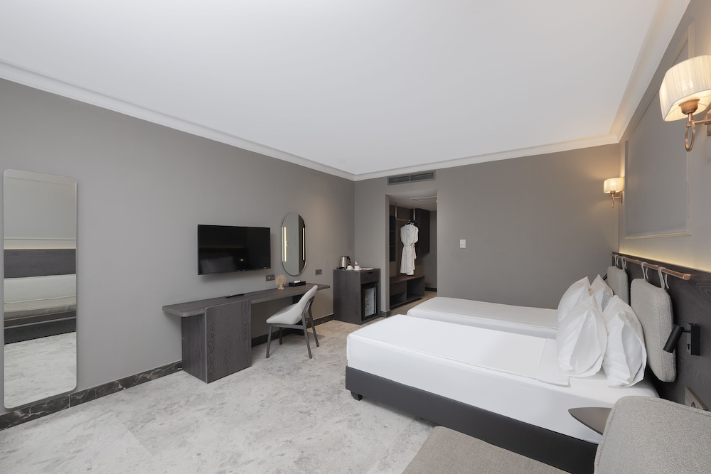 Udogodnienia biznesowe to całodobowe centrum biznesowe, ekspresowe zameldowanie oraz ekspresowe wymeldowanie. Jeżeli planujesz spotkanie w mieście Serik, obiekt oferuje centrum konferencyjne oraz sale konferencyjne o łącznej powierzchni 900 m kw. (9688 stopy kwadratowe). Płatne udogodnienia to transport z i na lotnisko. Dostępna jest także taka usługa jak bezpłatne parkowanie samodzielne. Zrelaksuj się w spa, które oferuje masaż, zabiegi na ciało i zabiegi na twarz. Dostępne udogodnienia rekreacyjne to prywatna plaża oraz 3 baseny odkryte. Ten obiekt oferuje również udogodnienia takie jak bezpłatny bezprzewodowy dostęp do internetu, obsługa portierska i usługi niani (za dopłatą). Zachwyć się kuchnią taką jak kuchnia międzynarodowa w restauracji La Boheme Restaurant, jednej z 4 restauracji w obiekcie takim jak obiekt. Możesz też zostać w pokoju i skorzystać z całodobowej obsługi pokojowej lub pójść po przekąskę do kawiarni. Ożywcze napoje znajdziesz w jednym z lokali: bar plażowy, bar przy basenie i 3 bary/salony klubowe.- Wszyscy goście przebywający w pokojach muszą być zarejestrowani w obiekcie.