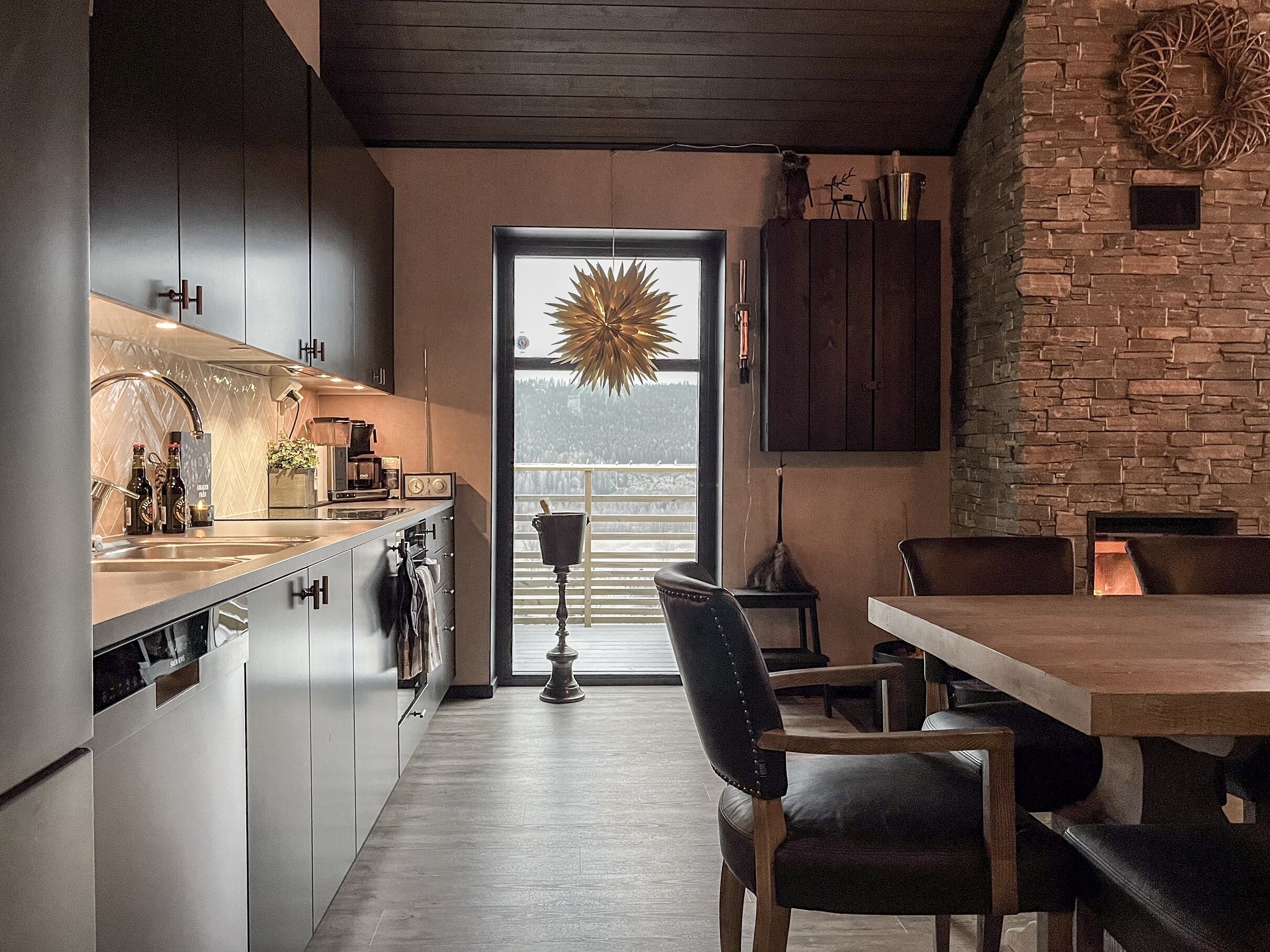 Kuchnia To otwarta i nowoczesna kuchnia wyposażona m.in. w lodówkę, zamrażarkę, kuchenkę z piekarnikiem, kuchenkę mikrofalową, ekspres do kawy i toster. Dostępna jest także zmywarka.