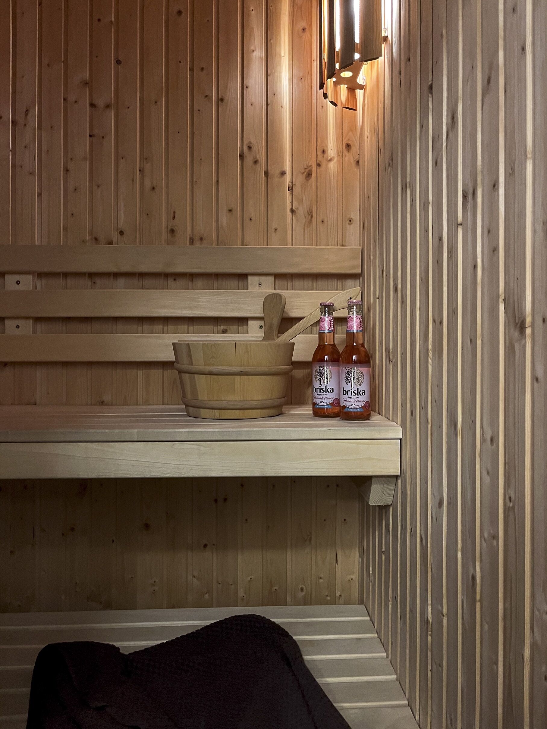 Łazienki W obiekcie znajdują się dwie toalety oraz dwa prysznice, po jednym na każdym poziomie. W jednej z łazienek znajduje się również sauna.