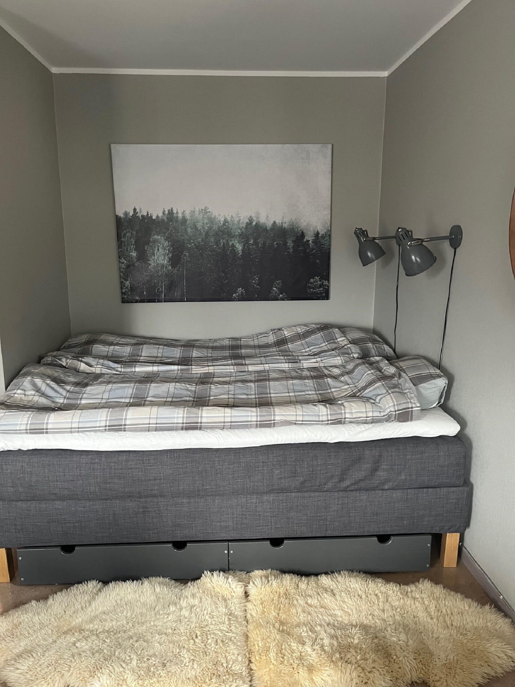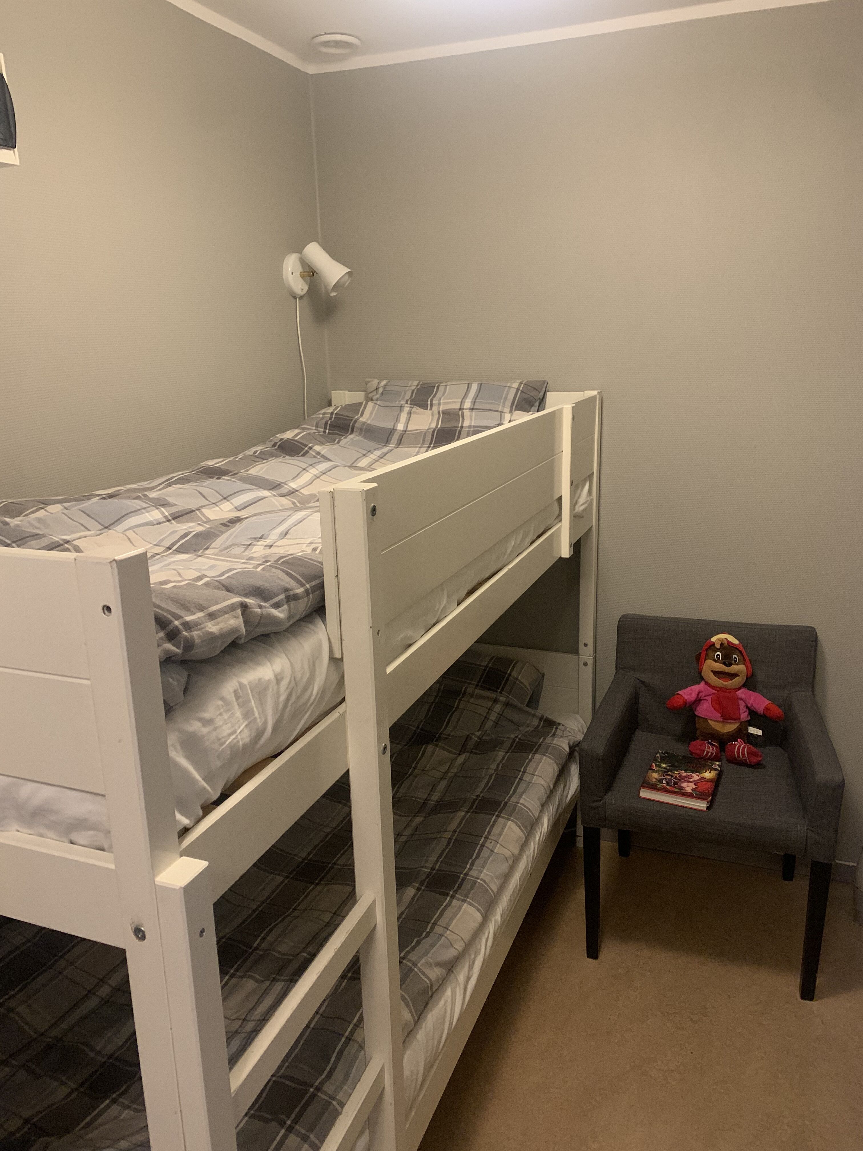 Sovrum I sovrummet (utan dörr) finns en våningssäng. I allrummet finns en dubbelsäng.