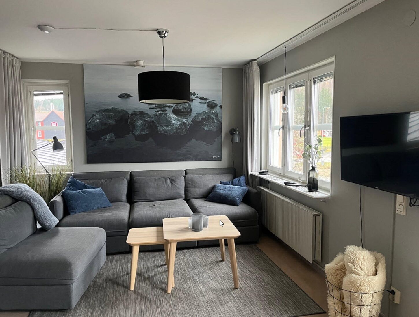 Allrum Allrummet har en bäddsoffa och ett soffbord. TV via Fiber Telia Lagom + 3 norska kanaler.
