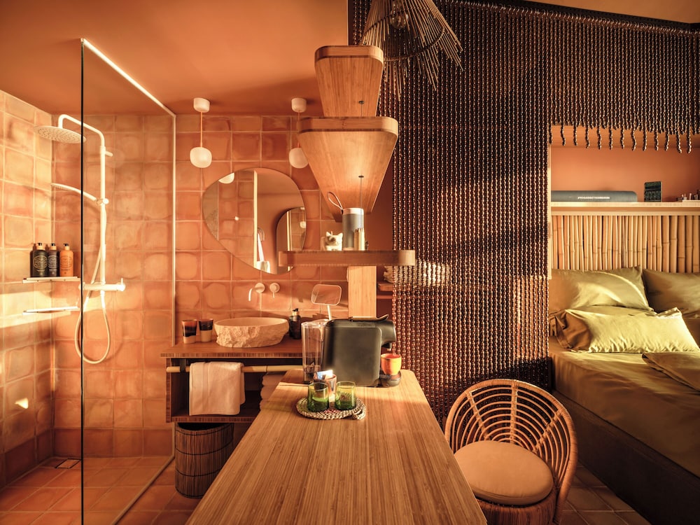 W czasie pobytu w obiekcie takim jak Bikini Island & Mountain Hotel Es Trenc – Adults only w mieście Ses Salines zamieszkasz przy deptaku, within a 5-minute walk of Plaża d'es Coto i Bassa Cabots. Hotel znajduje się 7,4 km od atrakcji takiej jak Plaża Es Trenc i 16,1 km od miejsca takiego jak Plaża Cala Llombards. Poczuj się jak w domu w 130 klimatyzowanych pokojach, których wyposażenie to ekspres do kawy. Bezpłatny bezprzewodowy dostęp do internetu zapewni łączność ze światem. Wyposażenie łazienki: prysznic (prysznic z deszczownicą) i suszarki do włosów. Udogodnienia obejmują sejfy i biurka oraz sprzątanie codziennie. Odległości są podane z dokładnością do 0,1 kilometra.