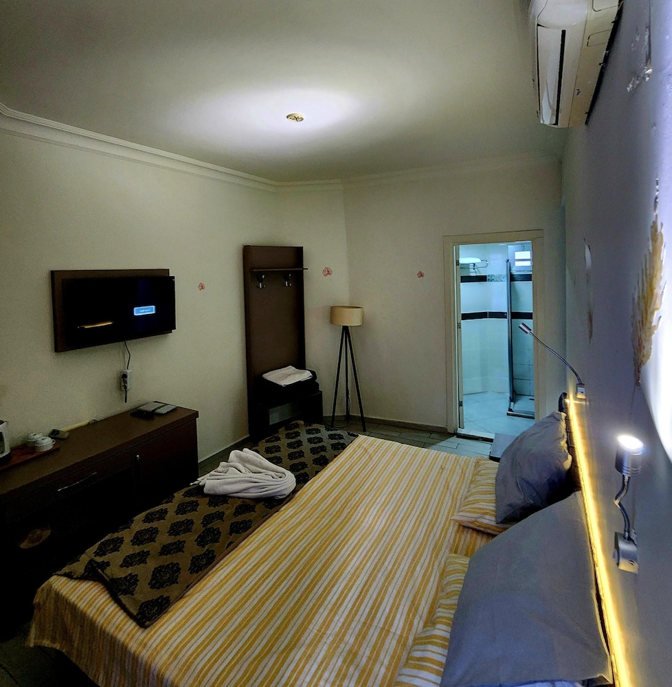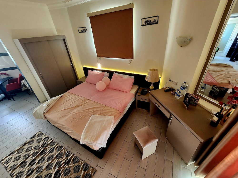 W czasie pobytu w obiekcie Cleopatra City Hotel znajdziesz się w samym centrum miasta Alanya, pięć minut samochodem od atrakcji takich jak Plaża Kleopatra i Muzeum archeologiczne w Alanya. Hotel znajduje się 1,9 km od atrakcji takiej jak Park wodny Alanya i 3,2 km od miejsca takiego jak Port w Alanyi. Poczuj się jak w domu w 35 klimatyzowanych pokojach, których wyposażenie to kominki i prywatne baseny. Do pokoju przylega balkon. Aneksy kuchenne — wyposażenie: lodówka, płyta kuchenna i ekspres do kawy. Bezpłatny przewodowy i bezprzewodowy dostęp do internetu zapewni łączność ze światem, a 55-cal. telewizor LCD i telewizja satelitarna — rozrywkę. Odległości są podane z dokładnością do 0,1 kilometra.