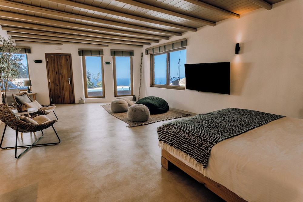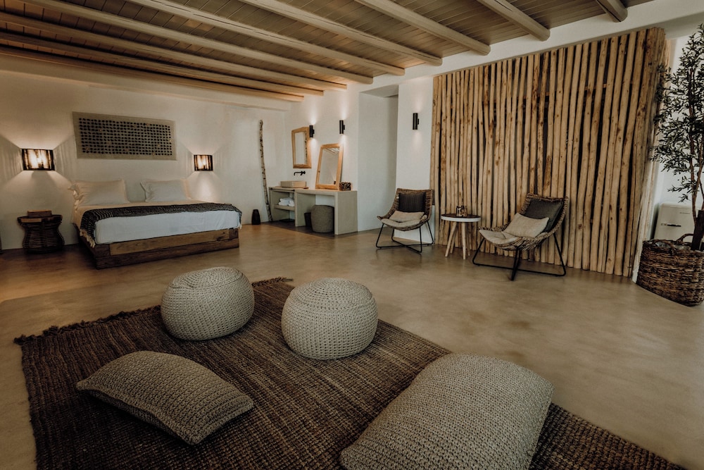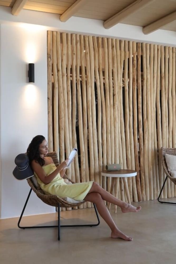 W czasie pobytu w obiekcie takim jak Mythic Paros in Paros zamieszkasz niedaleko lotniska, 10 minut samochodem od atrakcji takich jak Port w Parikii i Plaża Agia Eirini. Hotel (w stylu luksusowym) znajduje się 43,9 km od atrakcji takiej jak Plaża Agios Prokopios i 2,4 km od miejsca takiego jak Plaża Parasporos. Poczuj się jak w domu w 40 oryginalnie udekorowane pokojach, których wyposażenie to minibar i ekspres do kawy. Wyposażenie łóżek to pillowtop oraz kołdry puchowe i pościel z egipskiej bawełny. Do pokoju przylega umeblowane patio. Bezpłatny bezprzewodowy dostęp do internetu zapewni łączność ze światem, a 32-cal. Telewizory Smart TV i telewizja satelitarna — rozrywkę. Prywatna łazienka — wyposażenie: markowe przybory toaletowe i suszarki do włosów. Odległości są podane z dokładnością do 0,1 kilometra.