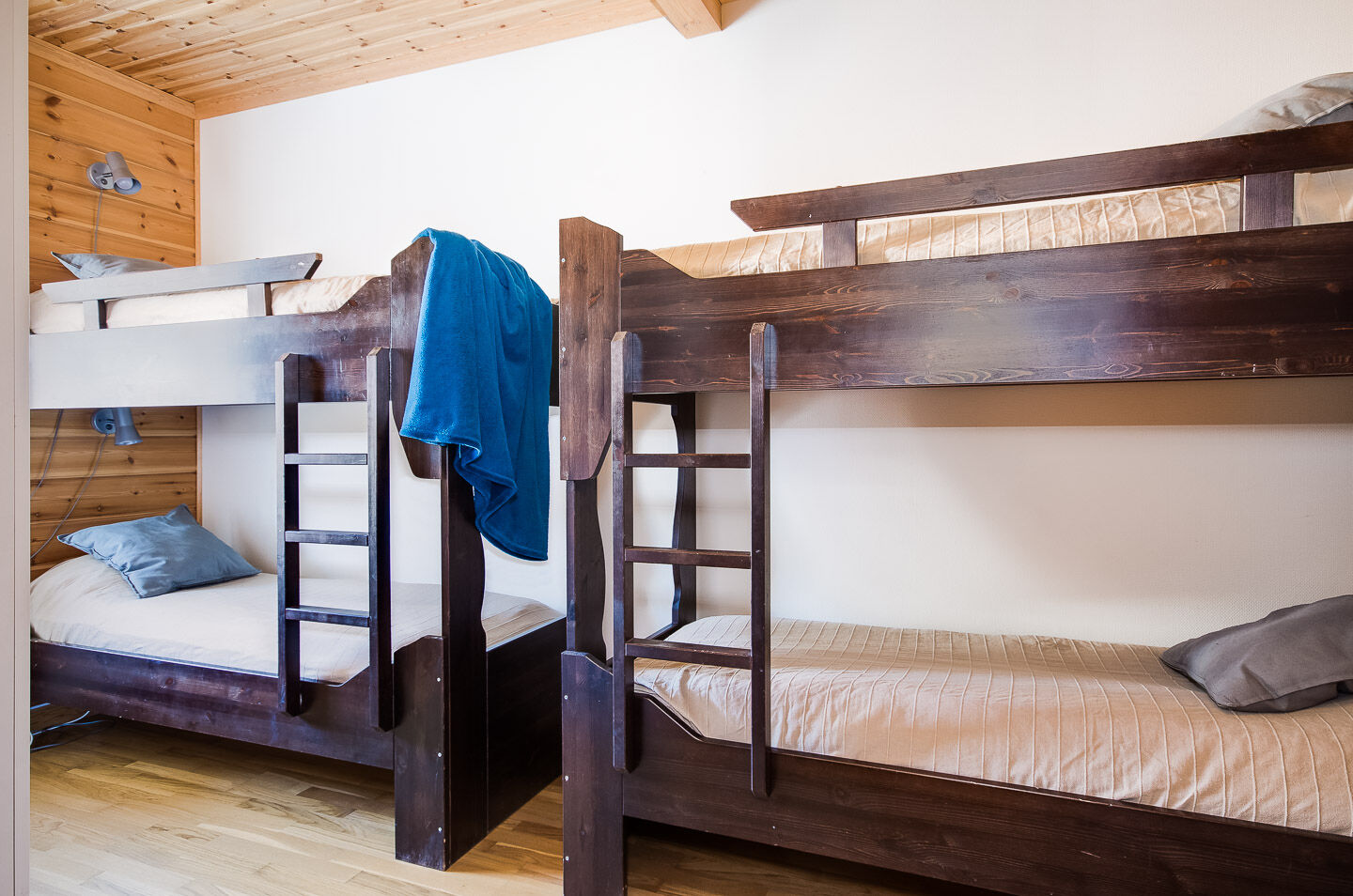 Sypialnie W jednej sypialni znajdują się dwa łóżka piętrowe, a w pozostałych dwóch sypialniach łóżka podwójne.