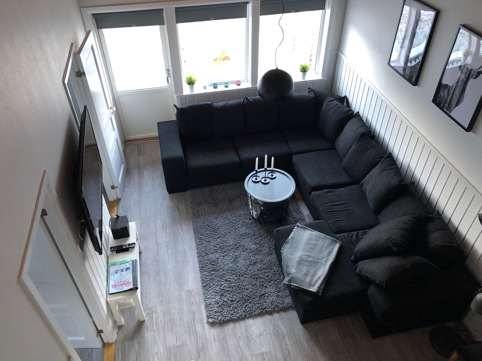 W salonie znajduje się sofa, stolik kawowy oraz telewizor. Na antresoli jest mały pokój telewizyjny. Własna oferta kanałów telewizyjnych.