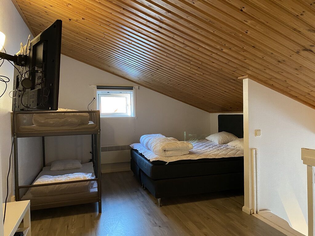 W zakwaterowaniu znajdują się dwie sypialnie na dolnym poziomie, jedna z łóżkiem podwójnym, a druga z łóżkiem piętrowym. Schody na antresolę prowadzą do części sypialnej z łóżkiem podwójnym i łóżkiem piętrowym.