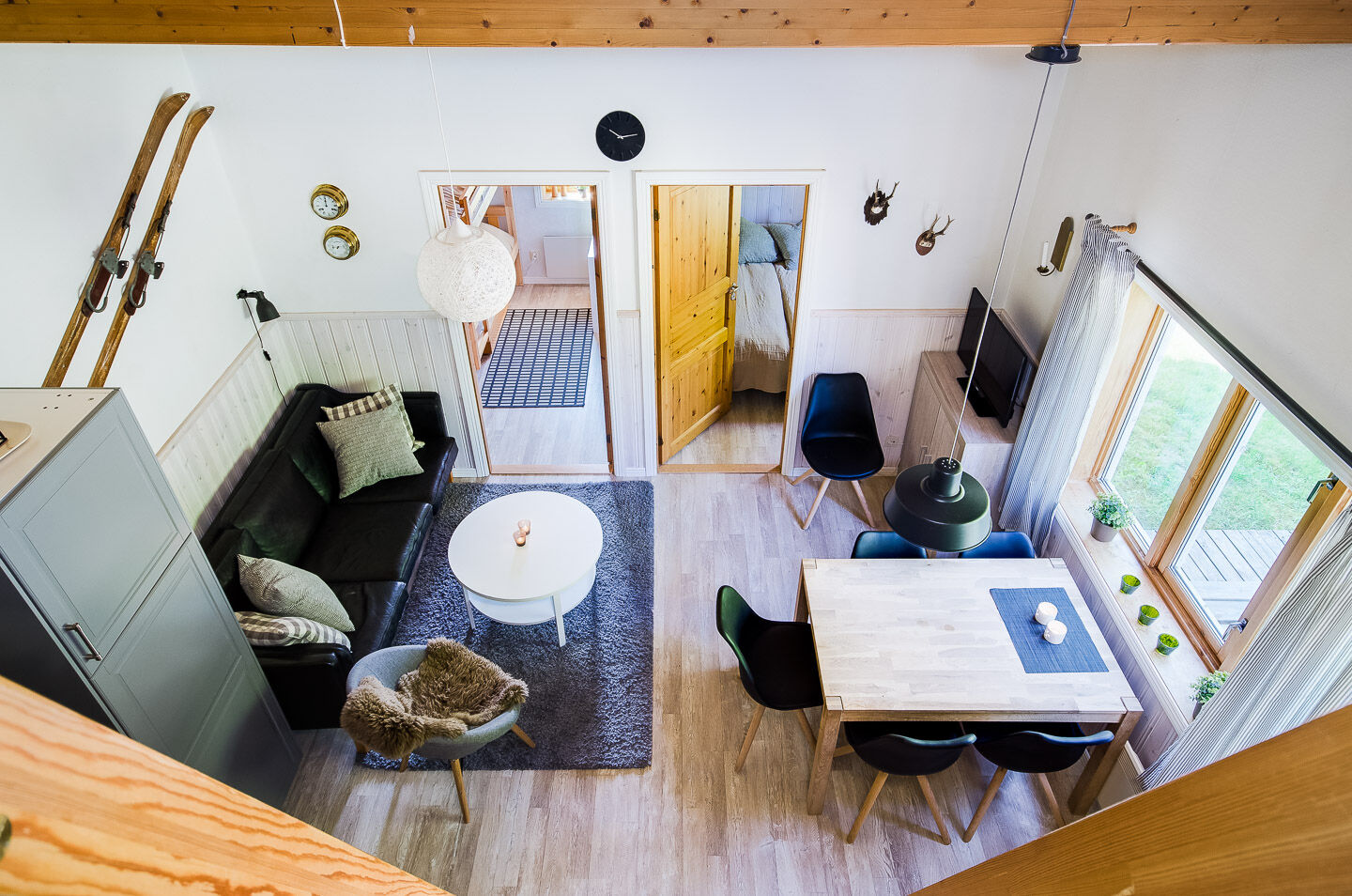 Przytulne domki z bali z czterema mieszkaniami w każdym budynku. Mają 51 m² i składają się z dwóch sypialni, antresoli, kuchni i salonu. Łazienka wyposażona jest w WC, prysznic i saunę.