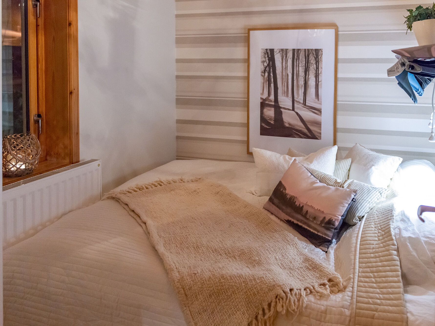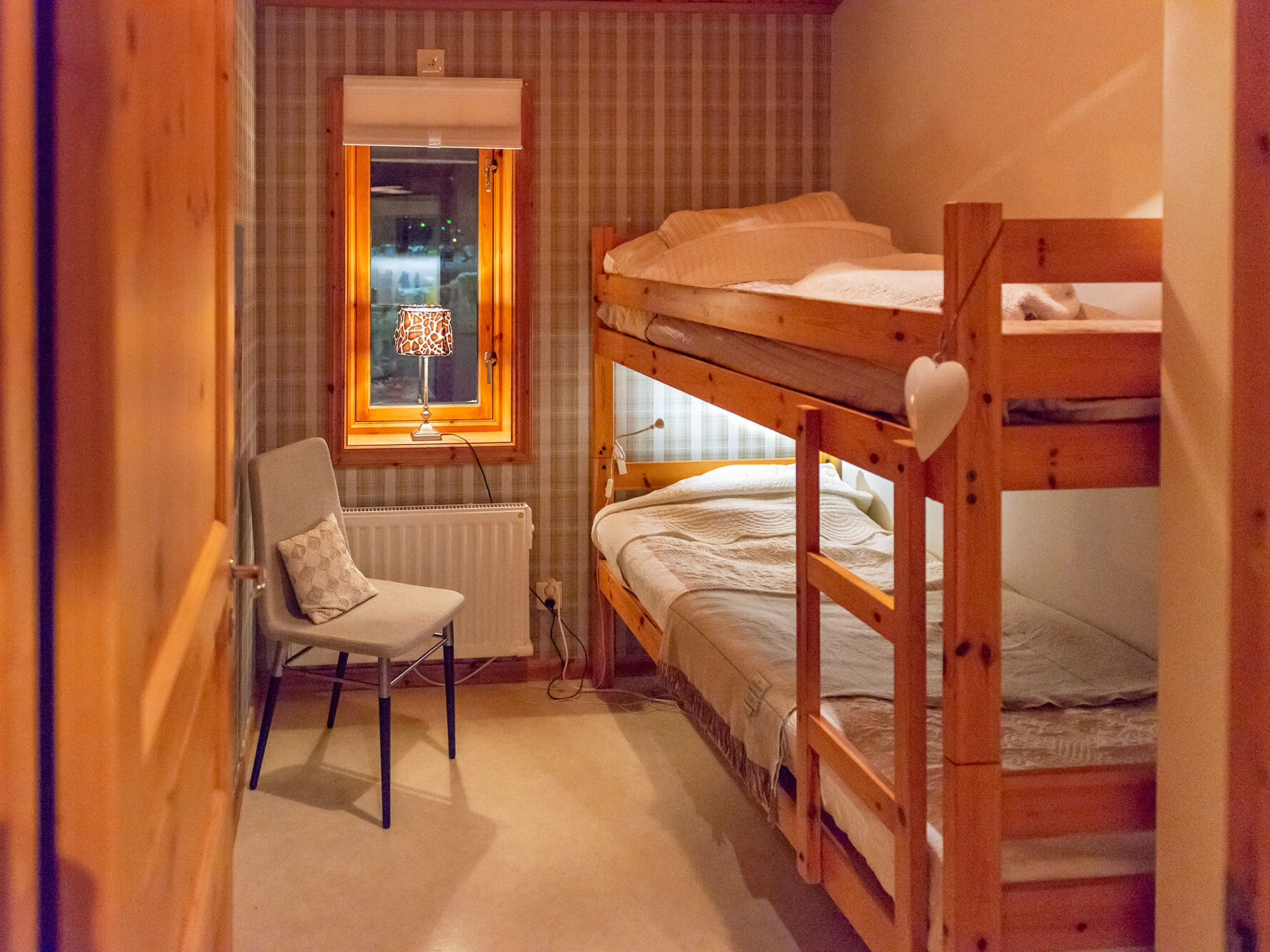 Sovrum I boendet finns ett sovrum med en våningssäng och ett sovrum med en dubbelsäng samt en lofttrappa till ett loft med två våningssängar.