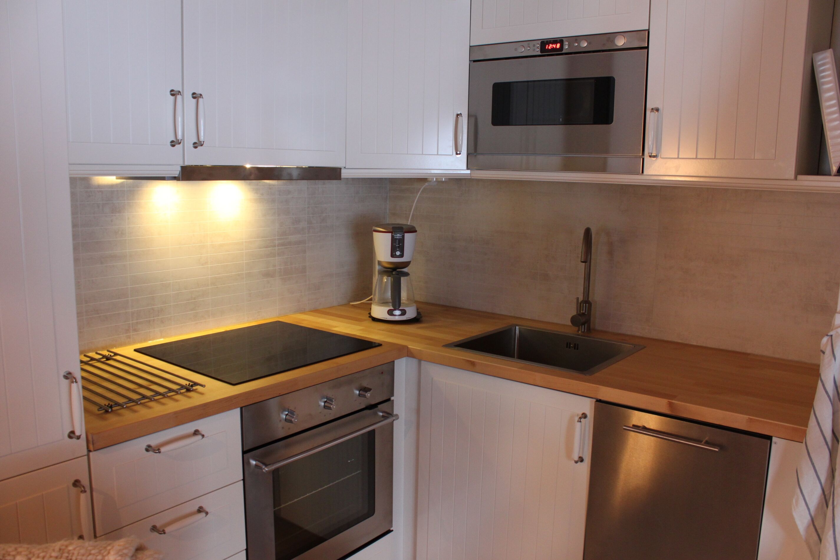 Kök I boendet finns ett mindre kök med kylskåp, spis/ugn, mikro, diskmaskin och kaffebryggare. Dishwasher is available in the accommodation.