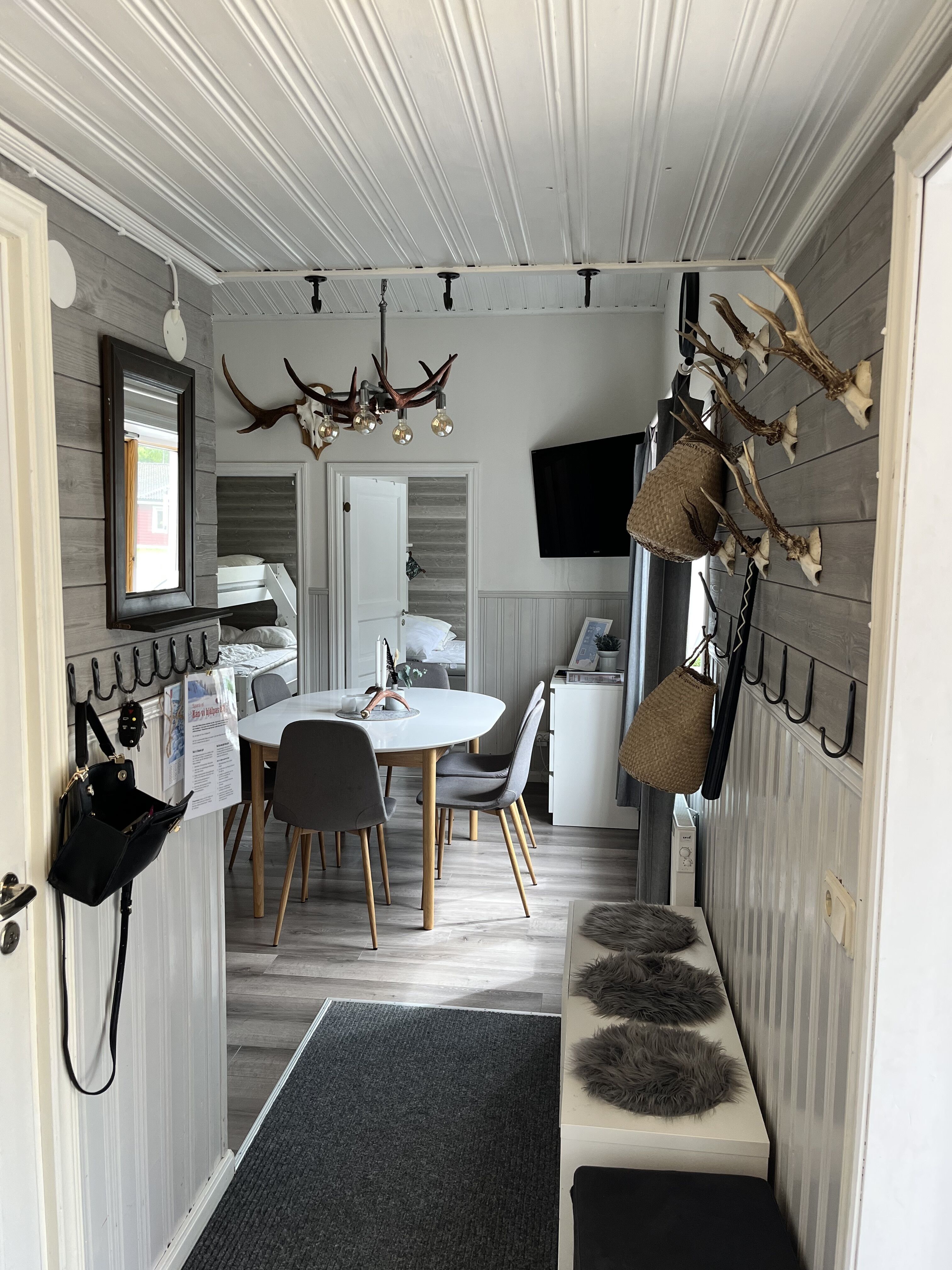 Salon W salonie znajduje się stół jadalny, sofa i telewizor. Wszystkie nasze zakwaterowania mają dostęp do telewizji kablowej.