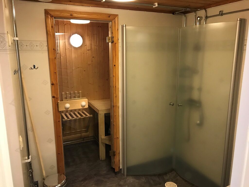 Łazienka W łazience znajduje się WC, prysznic i sauna.