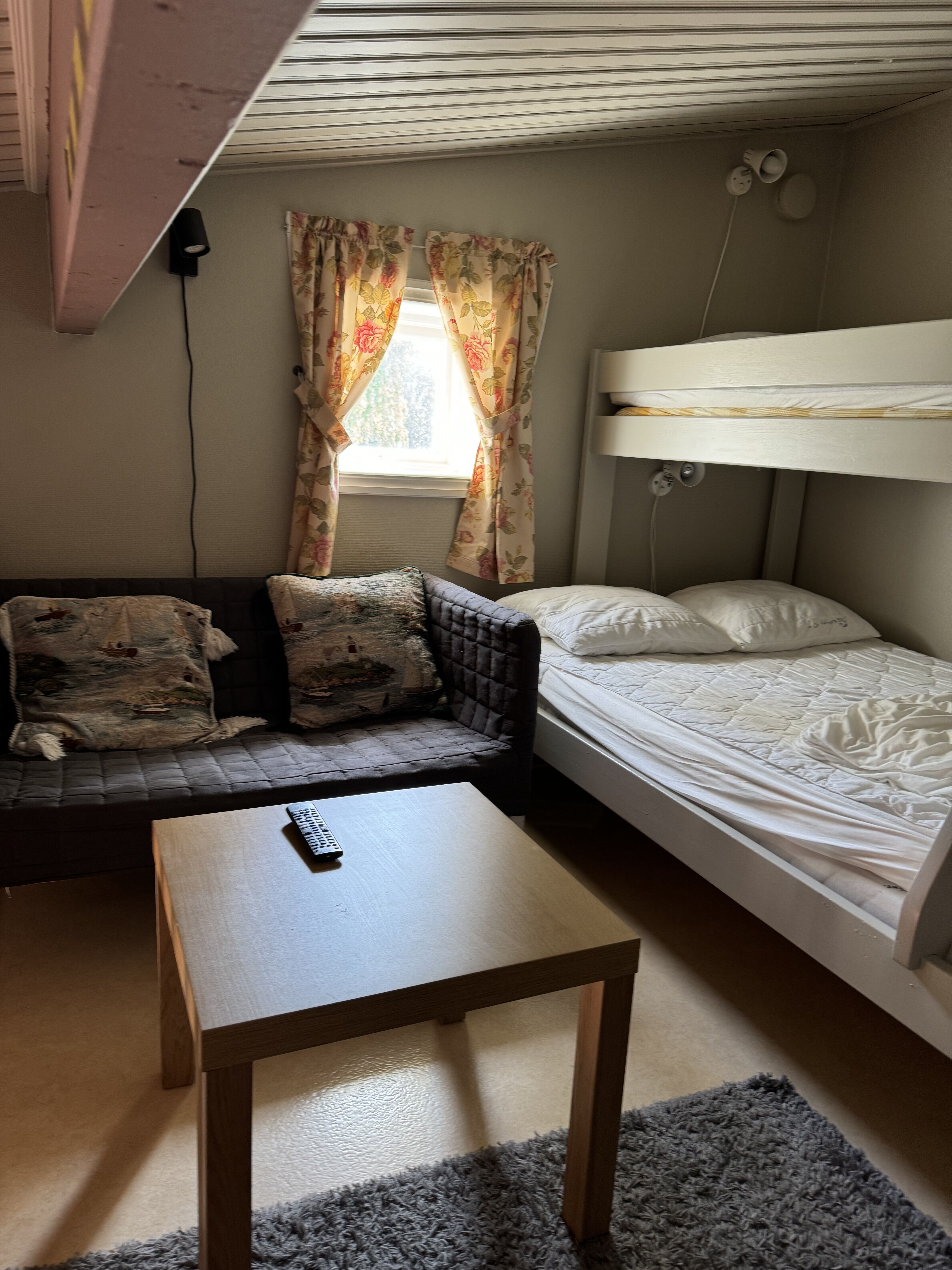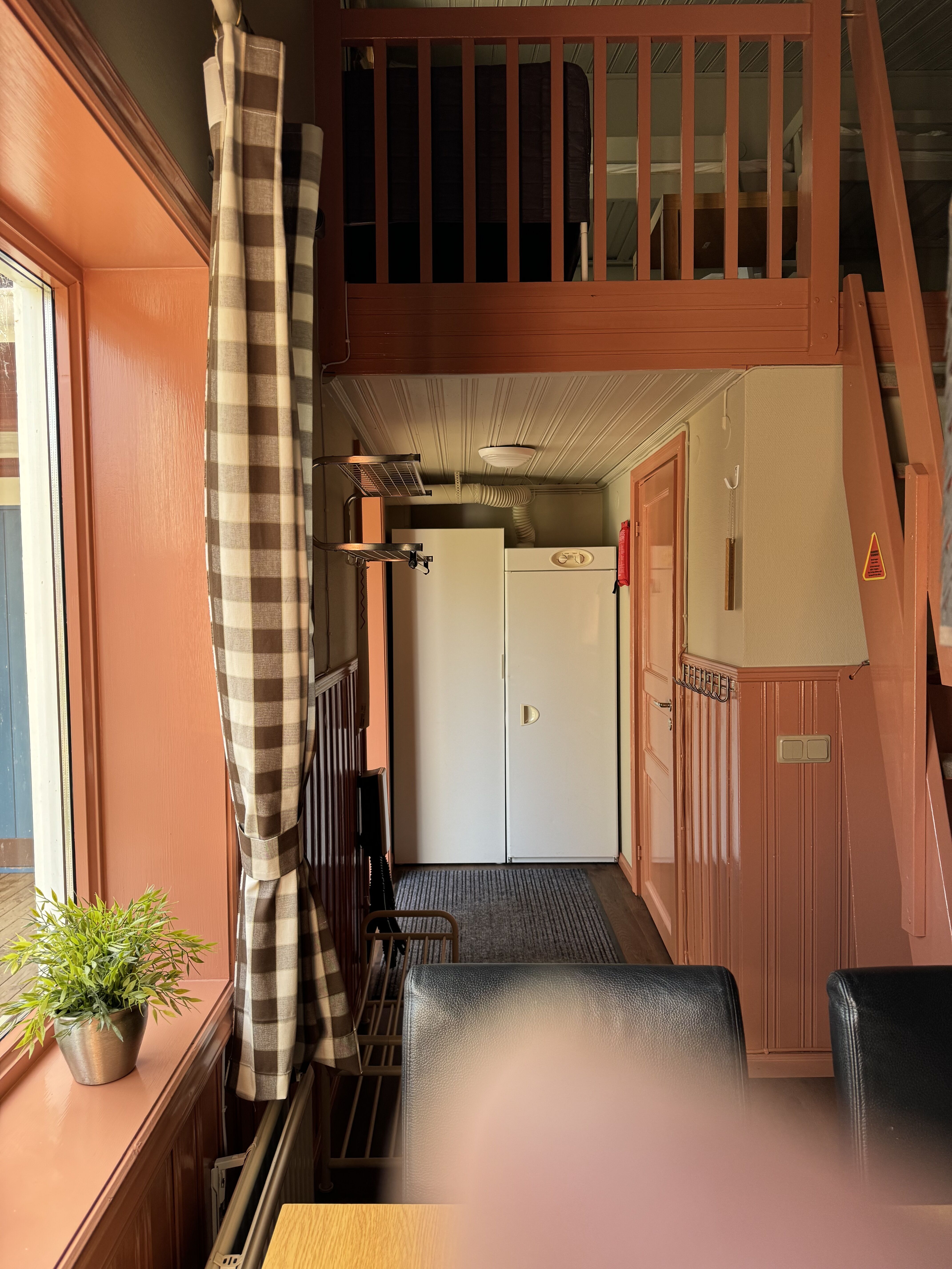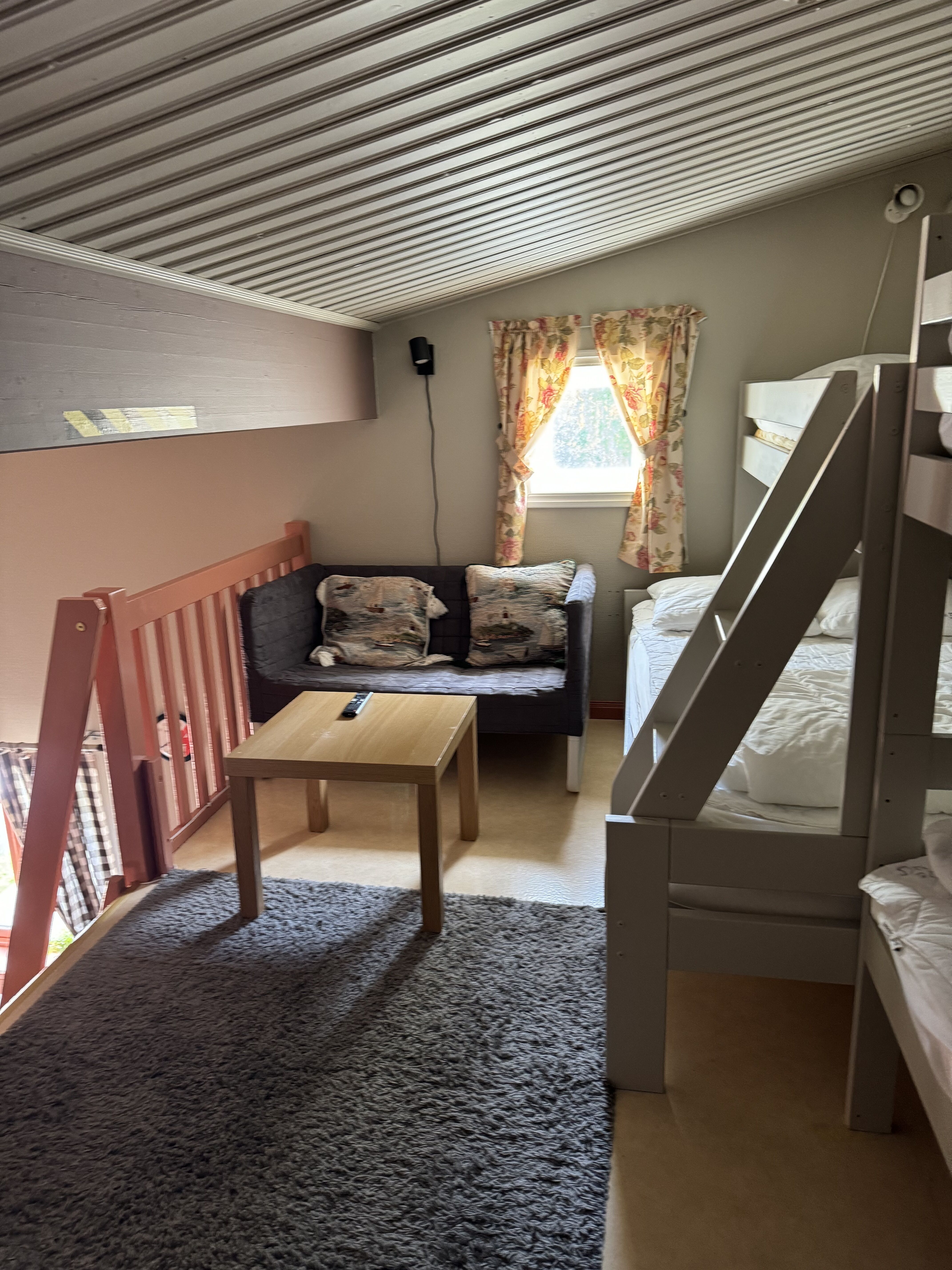 Sypialnie Zakwaterowanie posiada dwie sypialnie, jedna z łóżkiem małżeńskim, a druga z łóżkiem piętrowym. Schody na antresolę, gdzie znajdują się dwa łóżka piętrowe.
