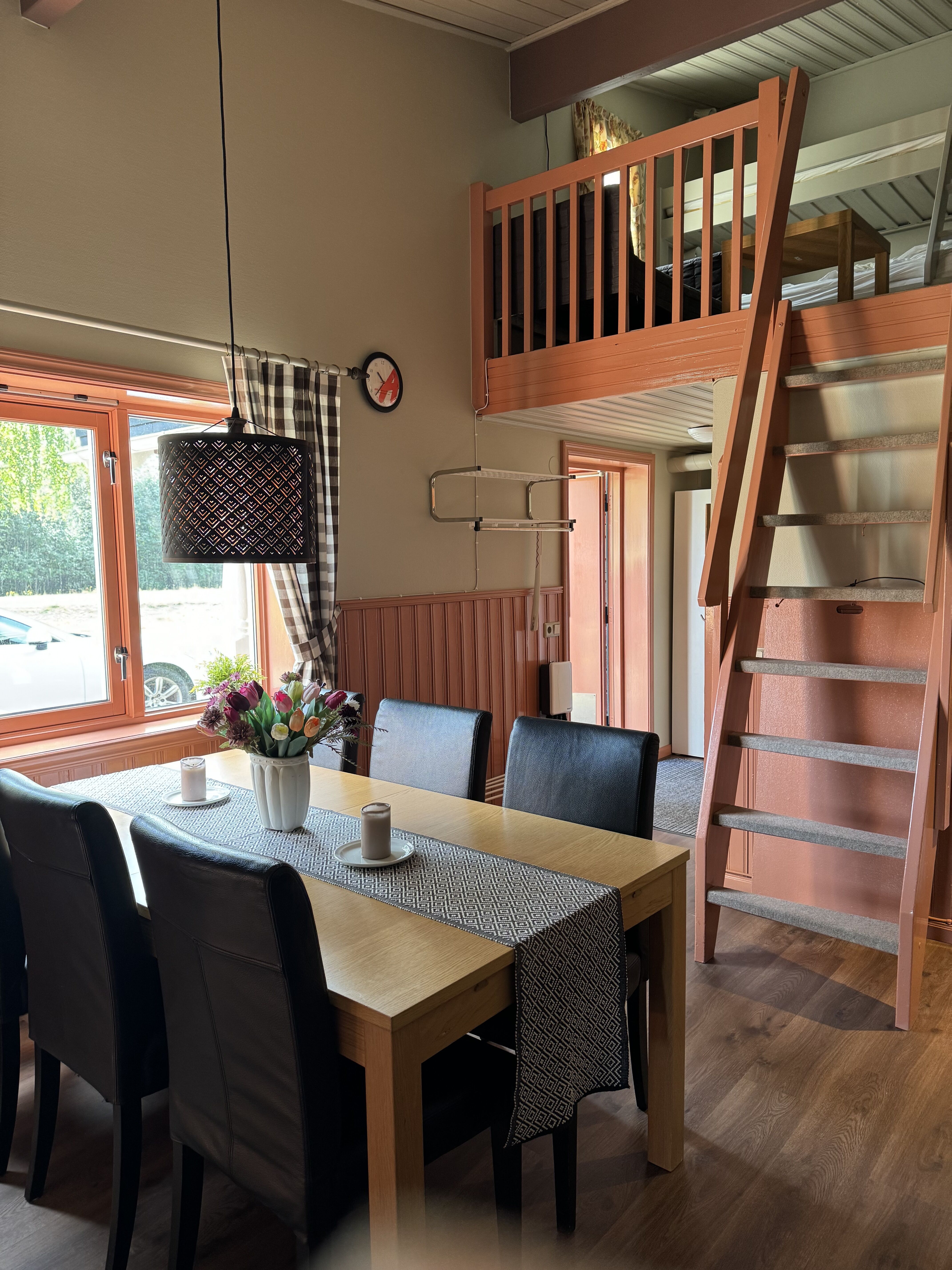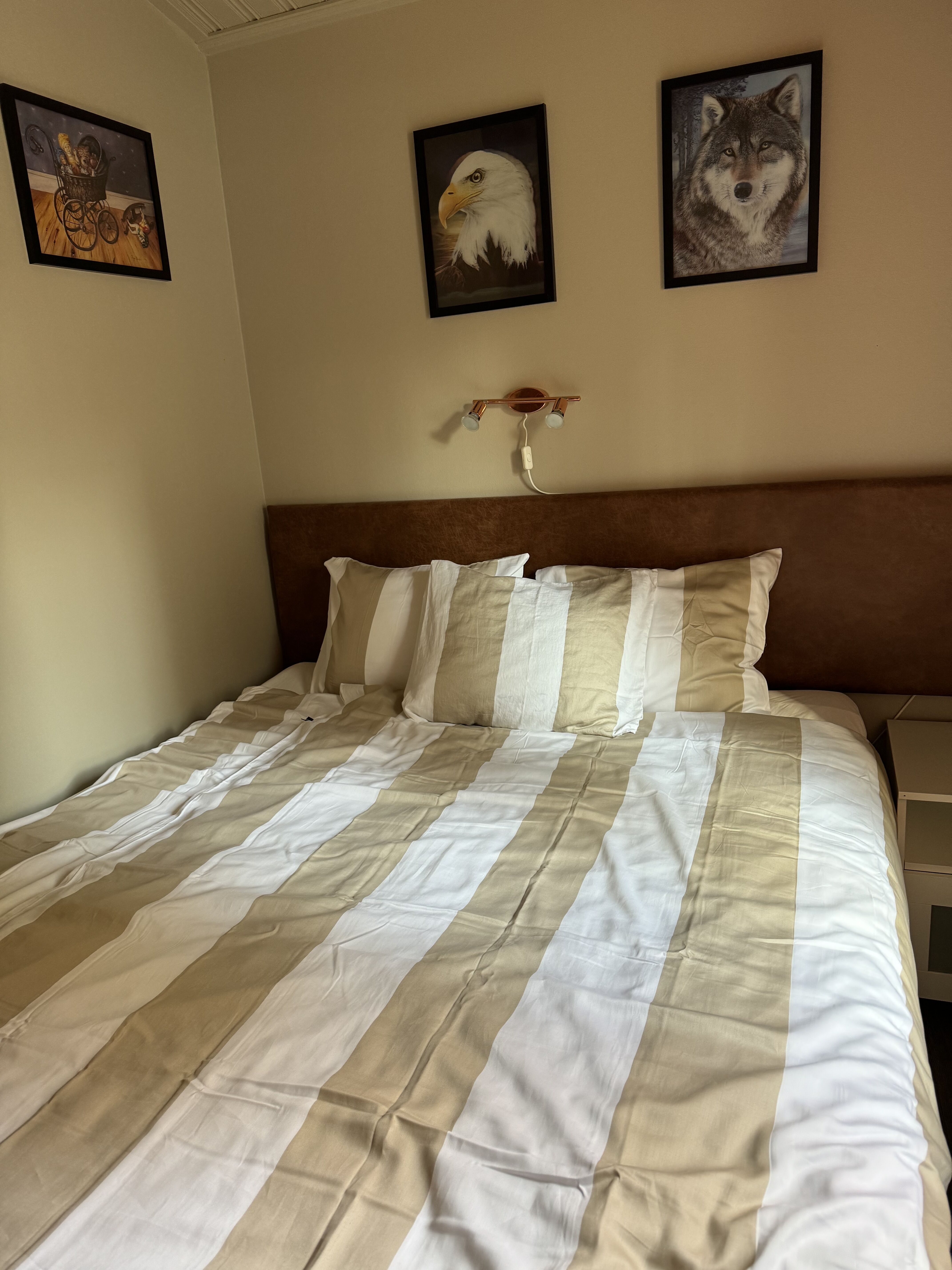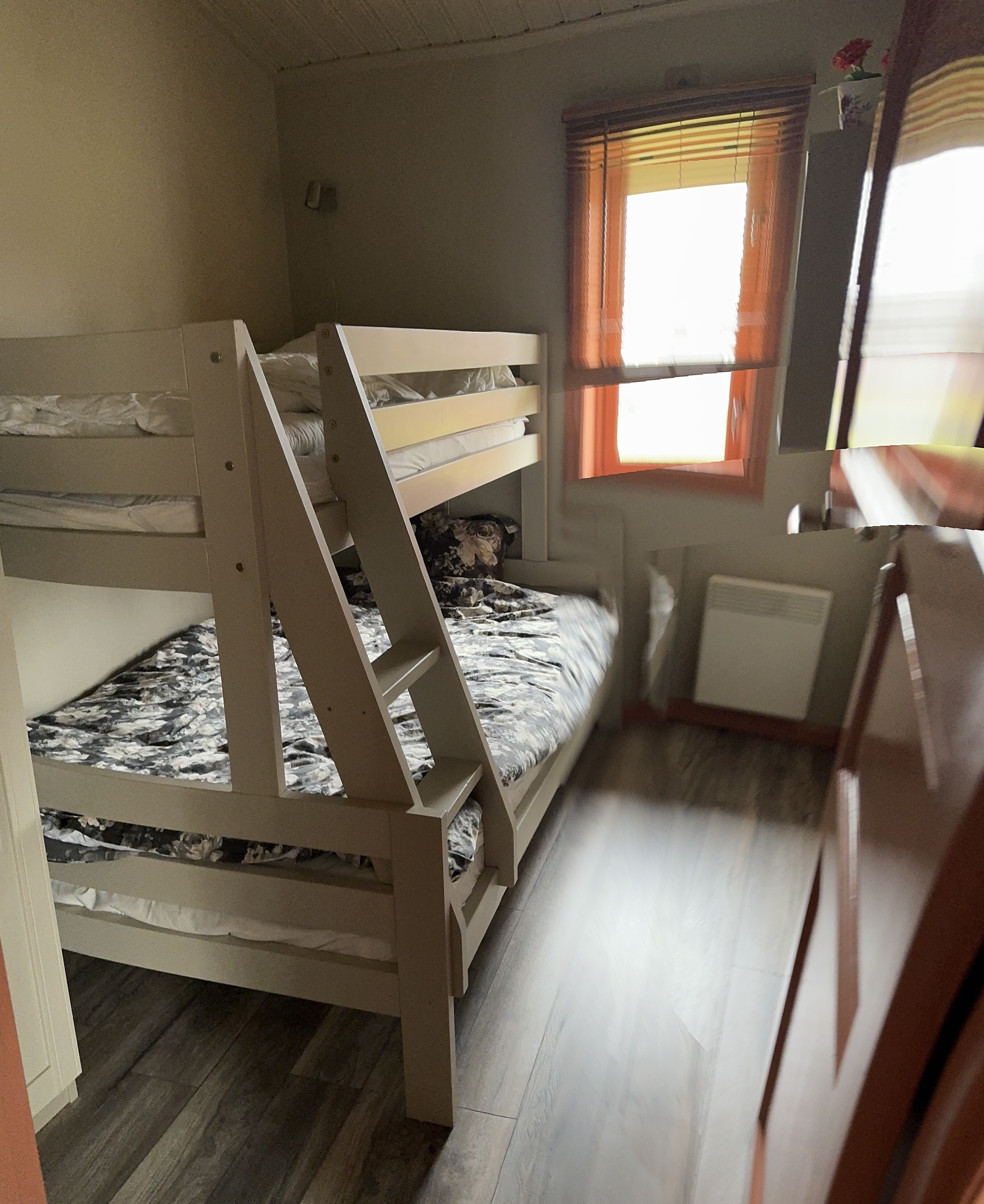 Sypialnie Zakwaterowanie posiada dwie sypialnie, jedna z łóżkiem małżeńskim, a druga z łóżkiem piętrowym. Schody na antresolę, gdzie znajdują się dwa łóżka piętrowe.