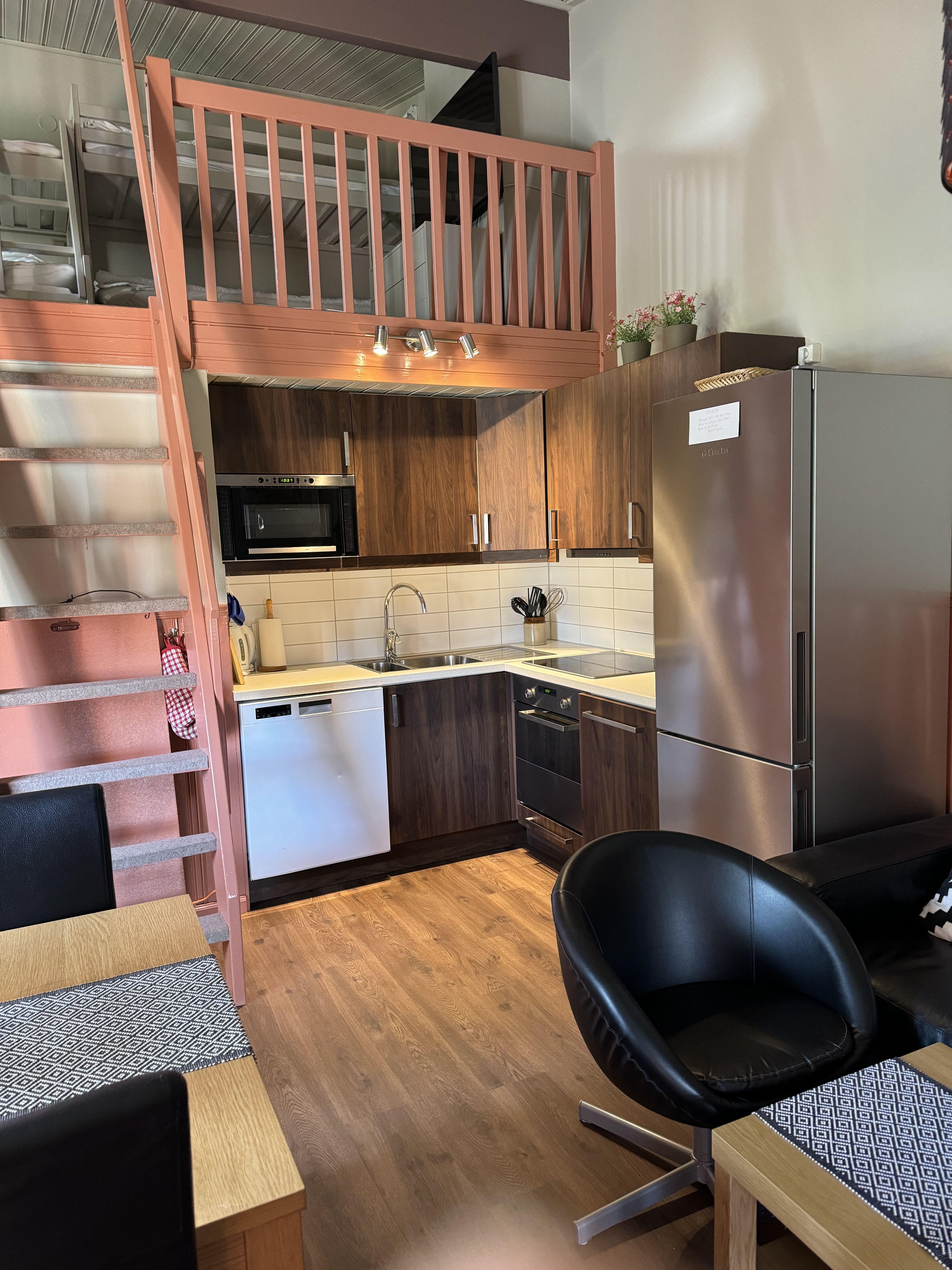 Kuchnia Zakwaterowanie dysponuje małą kuchnią z lodówką, kuchenką z piekarnikiem, mikrofalówką i ekspresem do kawy. Zmywarka jest dostępna.