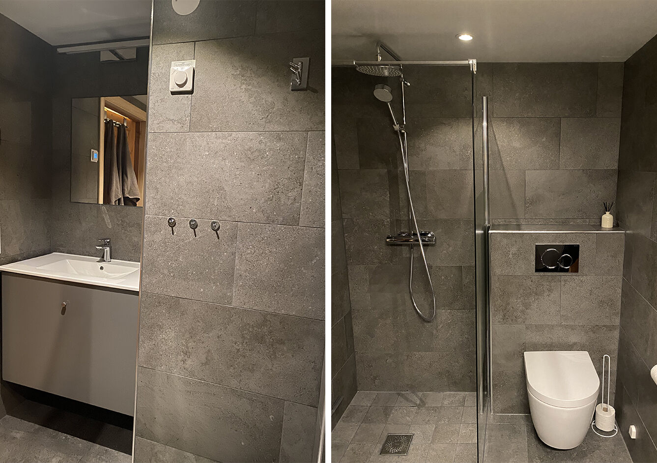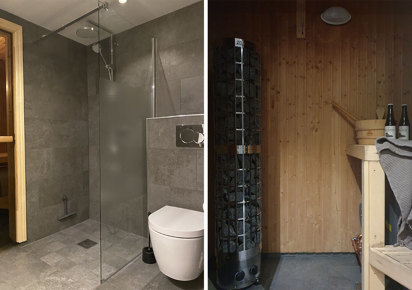 Łazienka Łazienka wyremontowana na sezon 22/23. W łazience znajdują się WC, natrysk, sauna i ogrzewanie podłogowe.