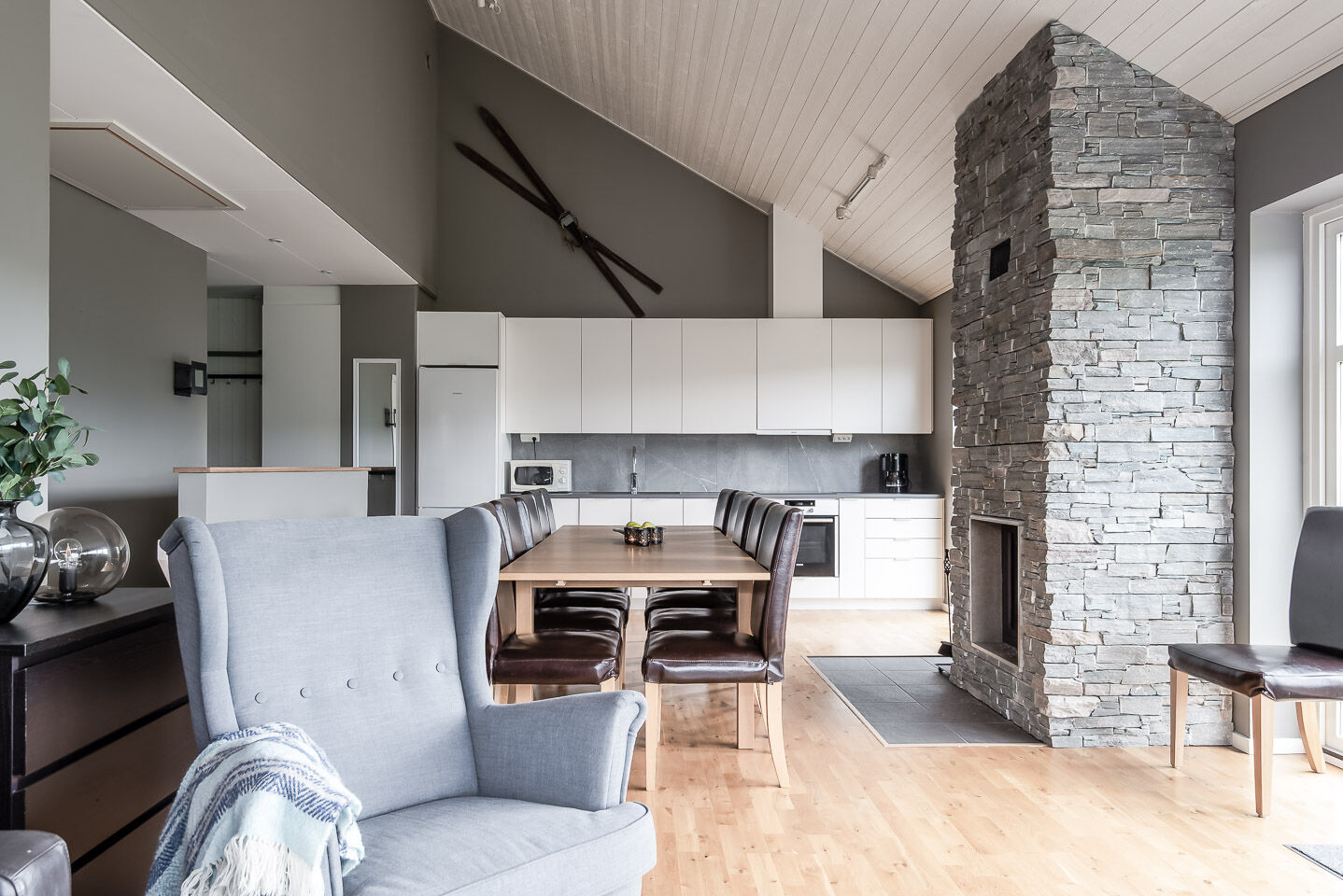 Kök Ett öppet och modernt kök, med bl.a. kyl och frys, spis med ugn, mikrovågsugn, kaffebryggare och brödrost Dishwasher is available in the accommodation.