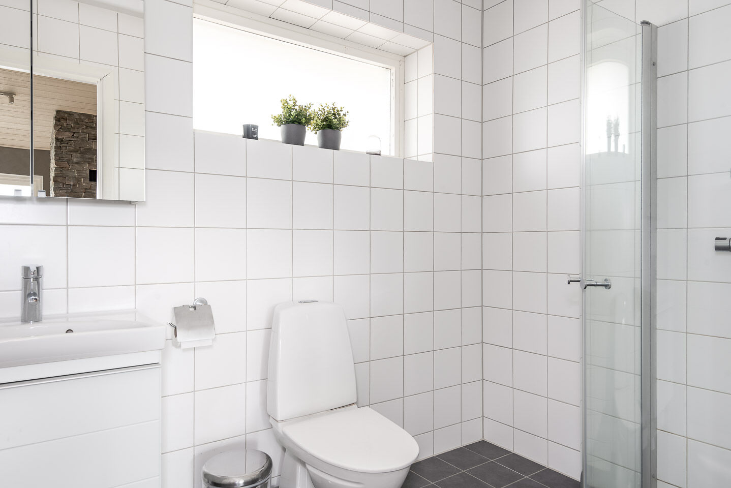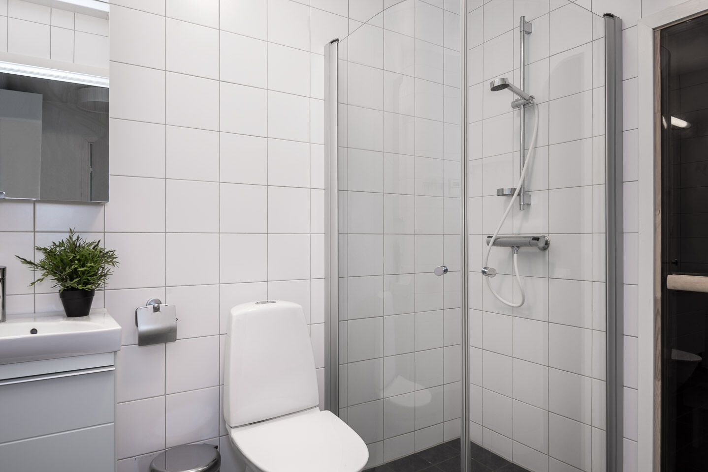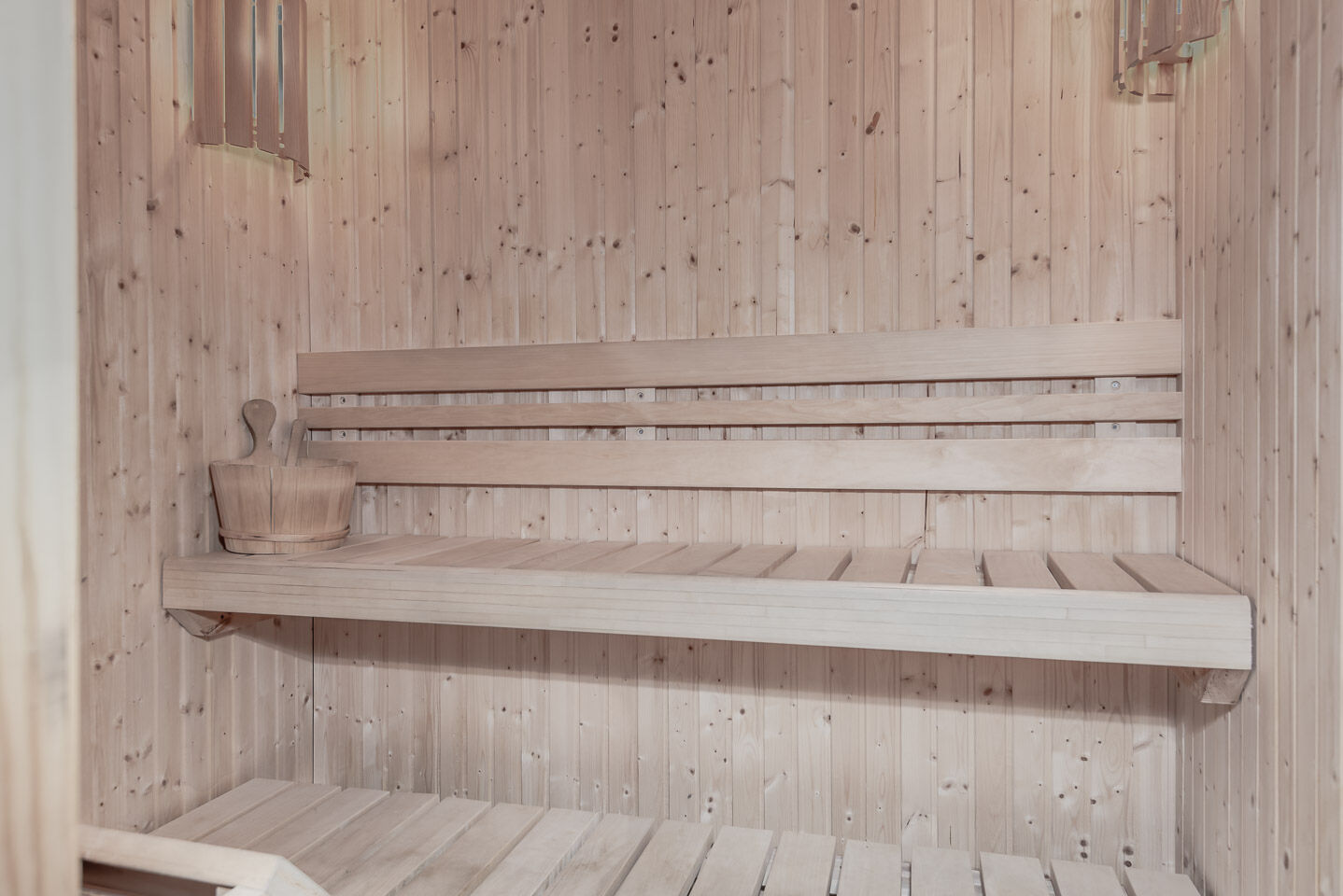 W obiekcie znajdują się dwie toalety oraz dwa prysznice, po jednym na każdym piętrze. W jednej z łazienek znajduje się sauna.