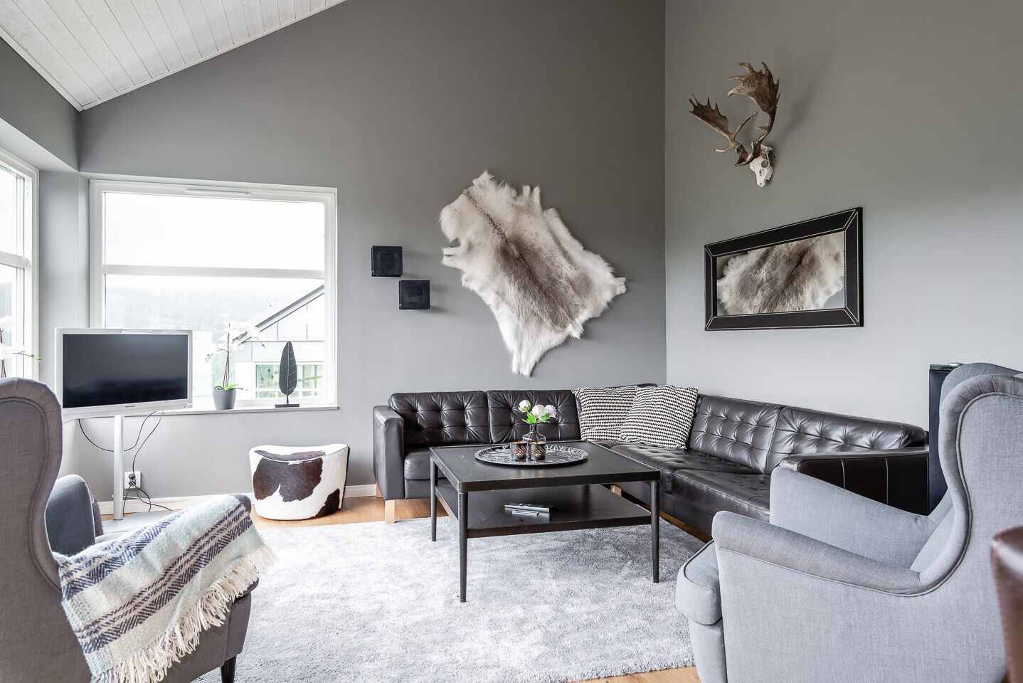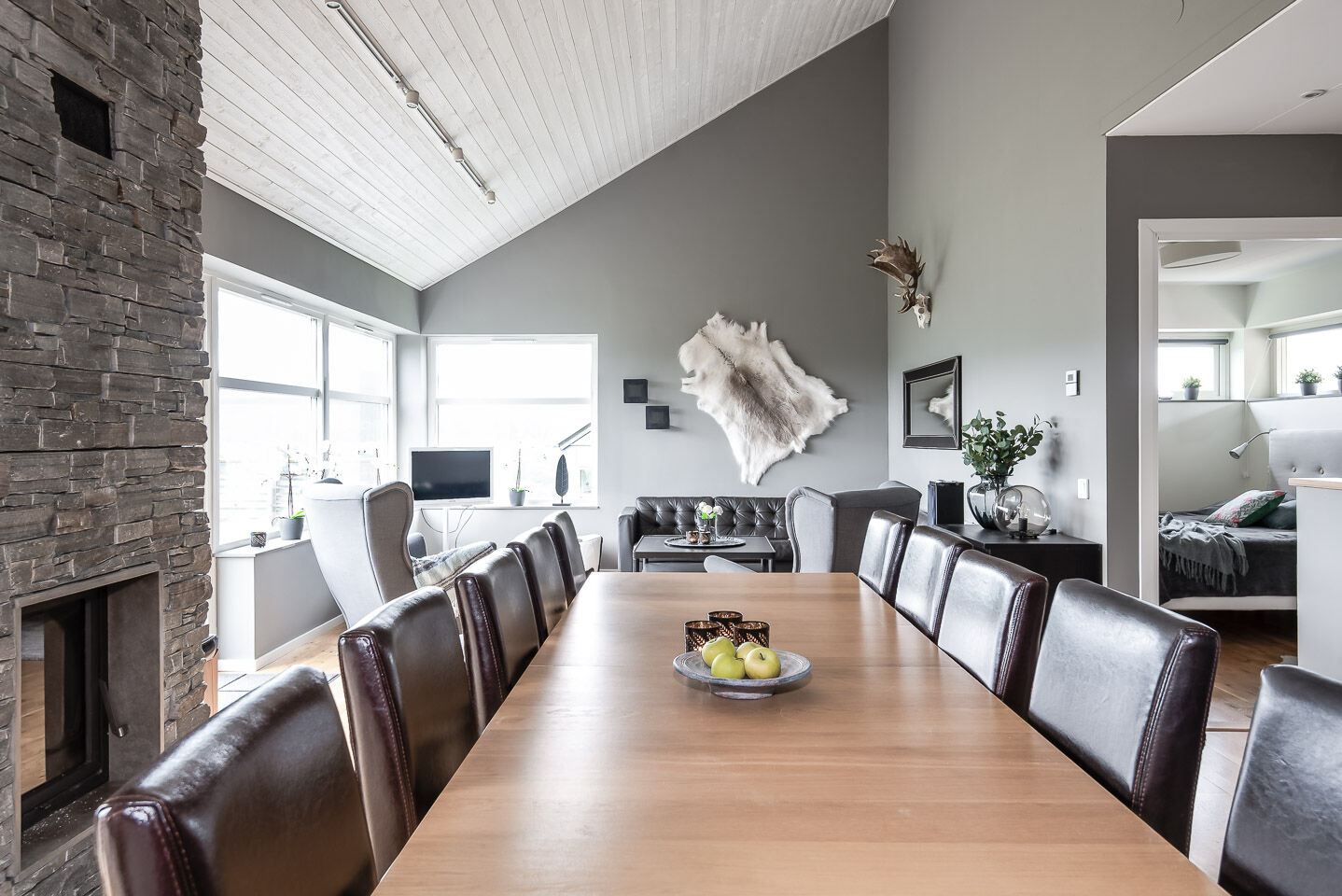 Allrum I vardagsrummet finns braskamin, soffgrupp och TV. Det finns allrum både uppe och nere. Alla våra boenden är kopplade till kabel-tv.