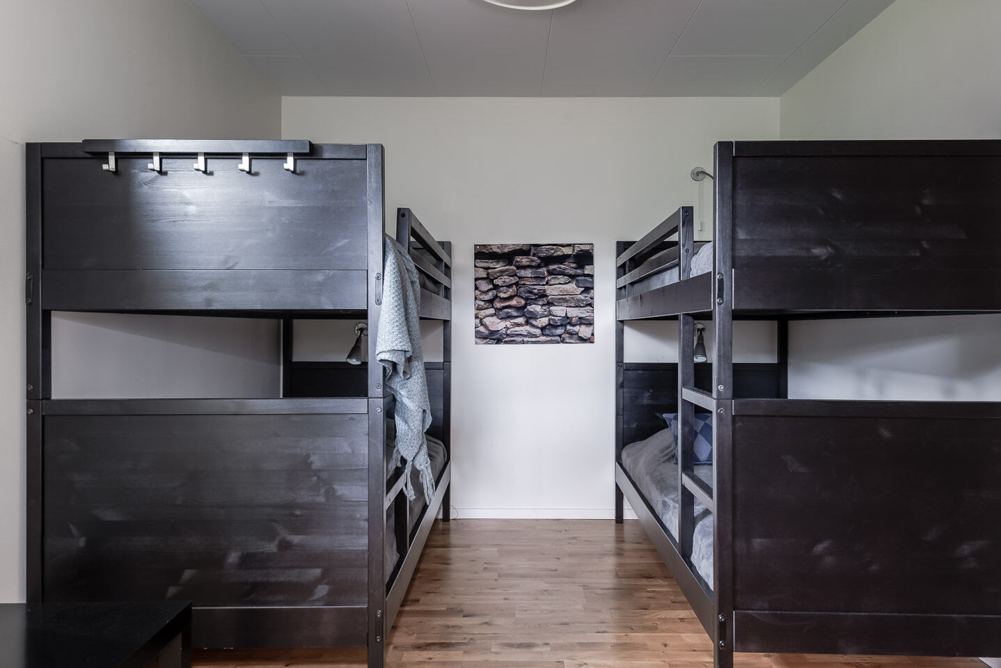 Obiekt posiada cztery sypialnie. Dwa pokoje mają łóżka podwójne, a dwa łóżka piętrowe. Jedna sypialnia nie ma drzwi. Trzy z pokoi znajdują się na dolnym piętrze, czwarty na poziomie wejścia.