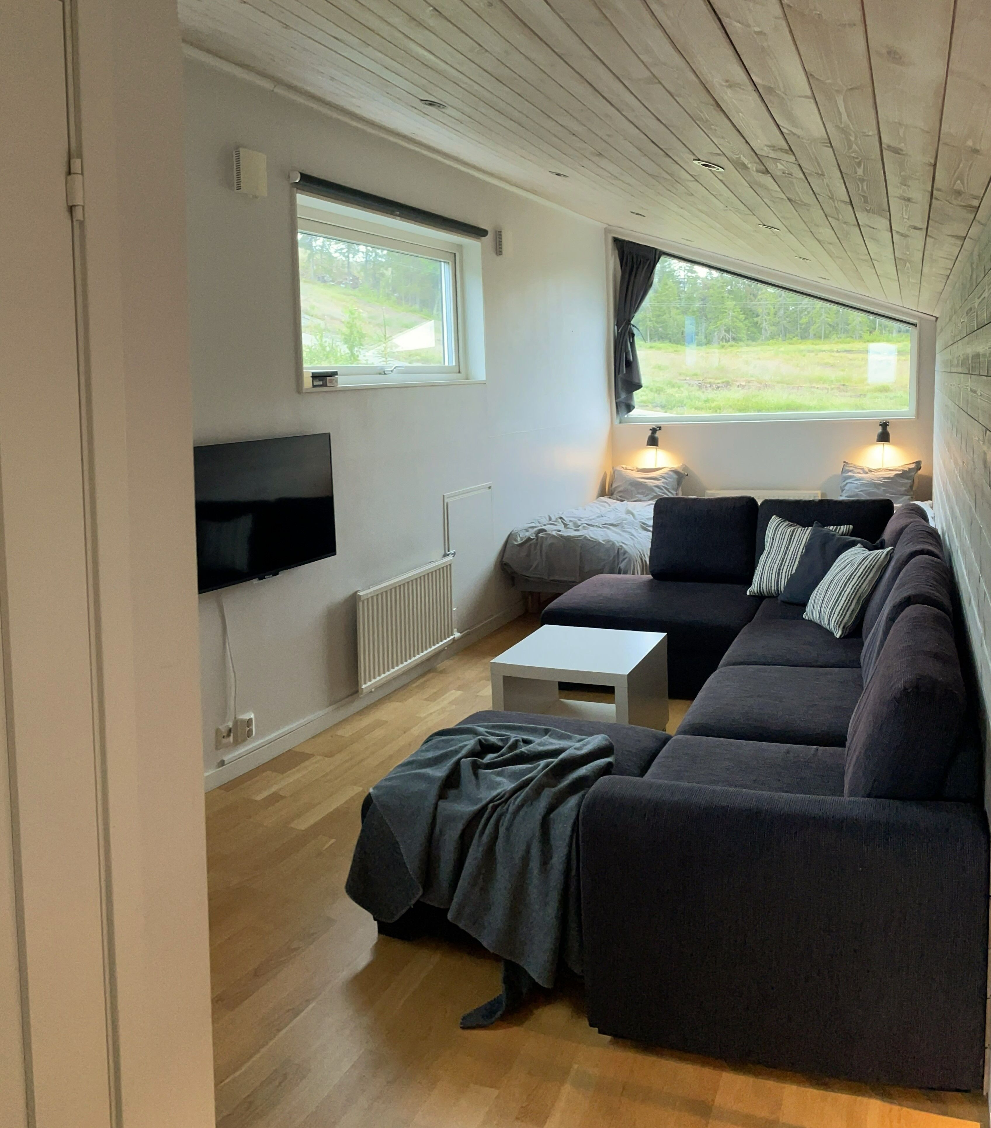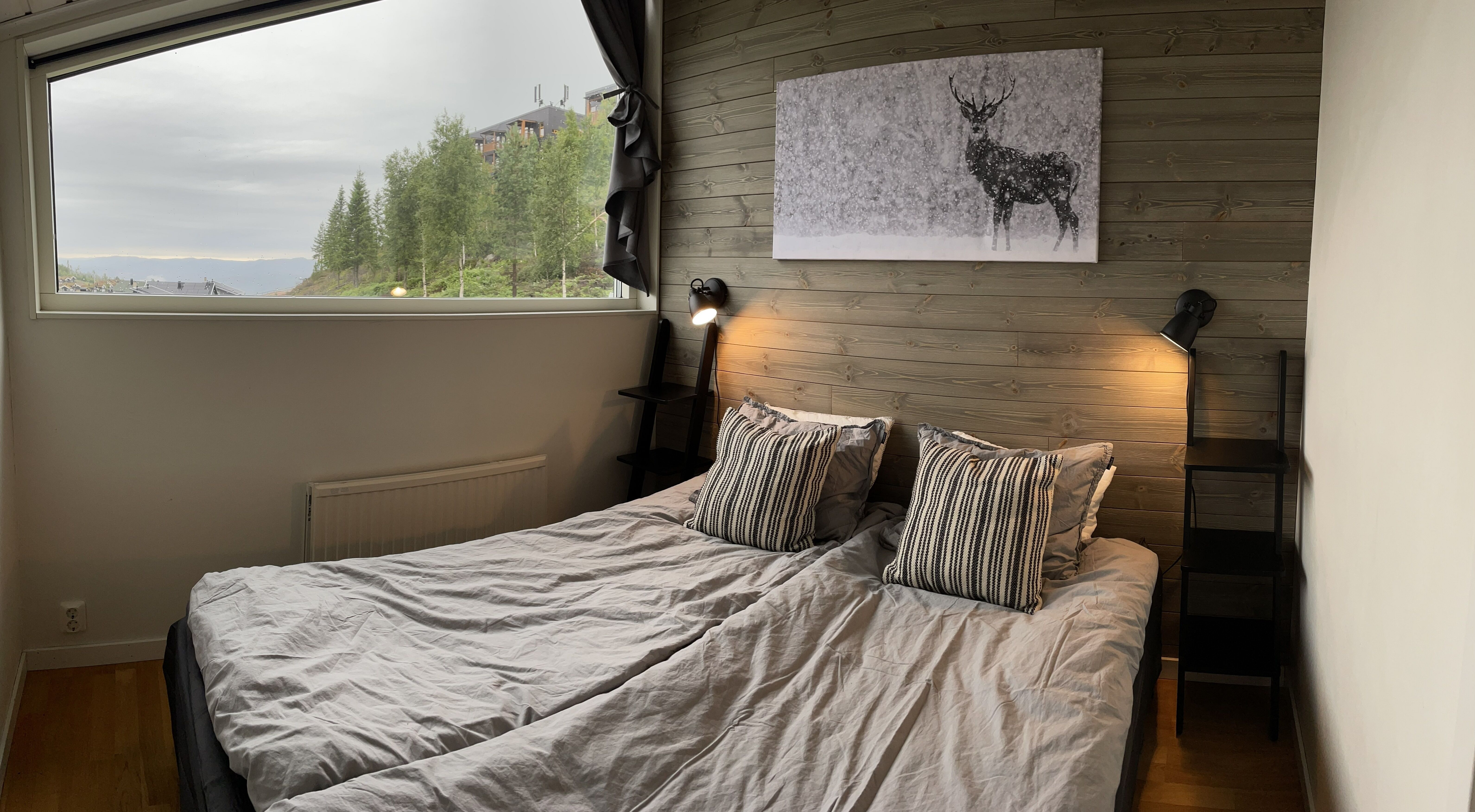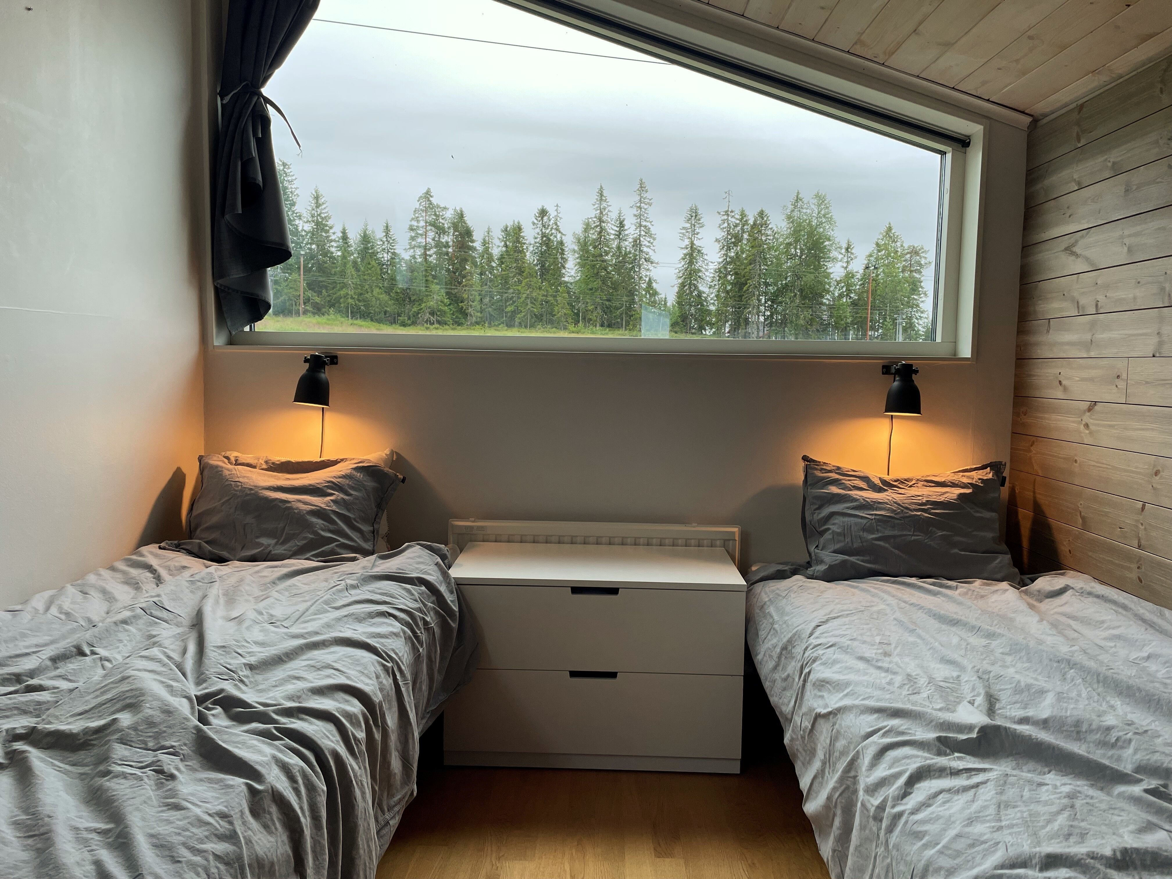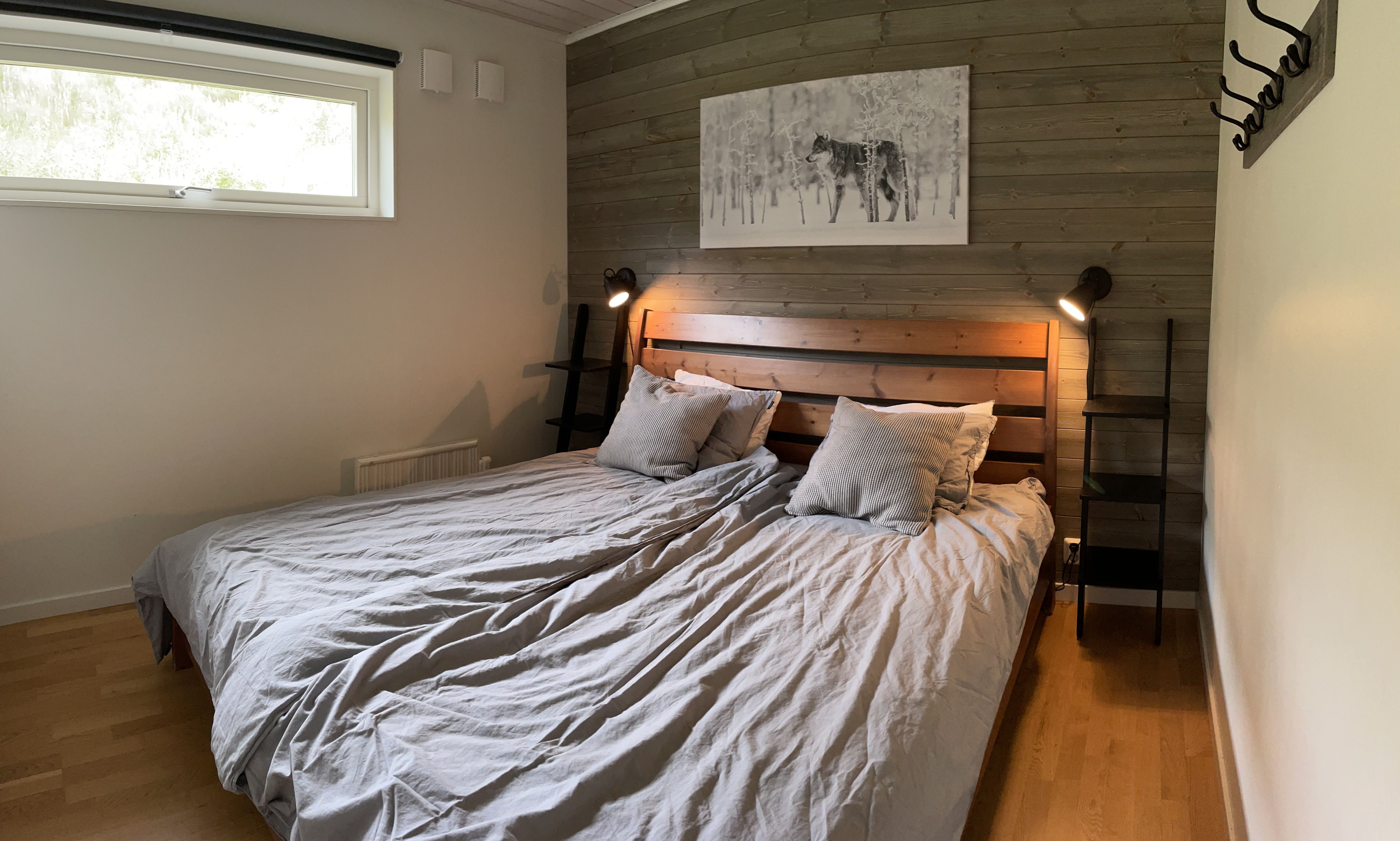 Na parterze znajdują się trzy sypialnie: jedna z łóżkiem podwójnym i dwie z łóżkiem rodzinnym w każdym pomieszczeniu. Na antresoli znajduje się pokój z łóżkiem podwójnym. Na otwartej antresoli znajdują się dwa łóżka pojedyncze oraz dodatkowe miejsca noclegowe na sofie.