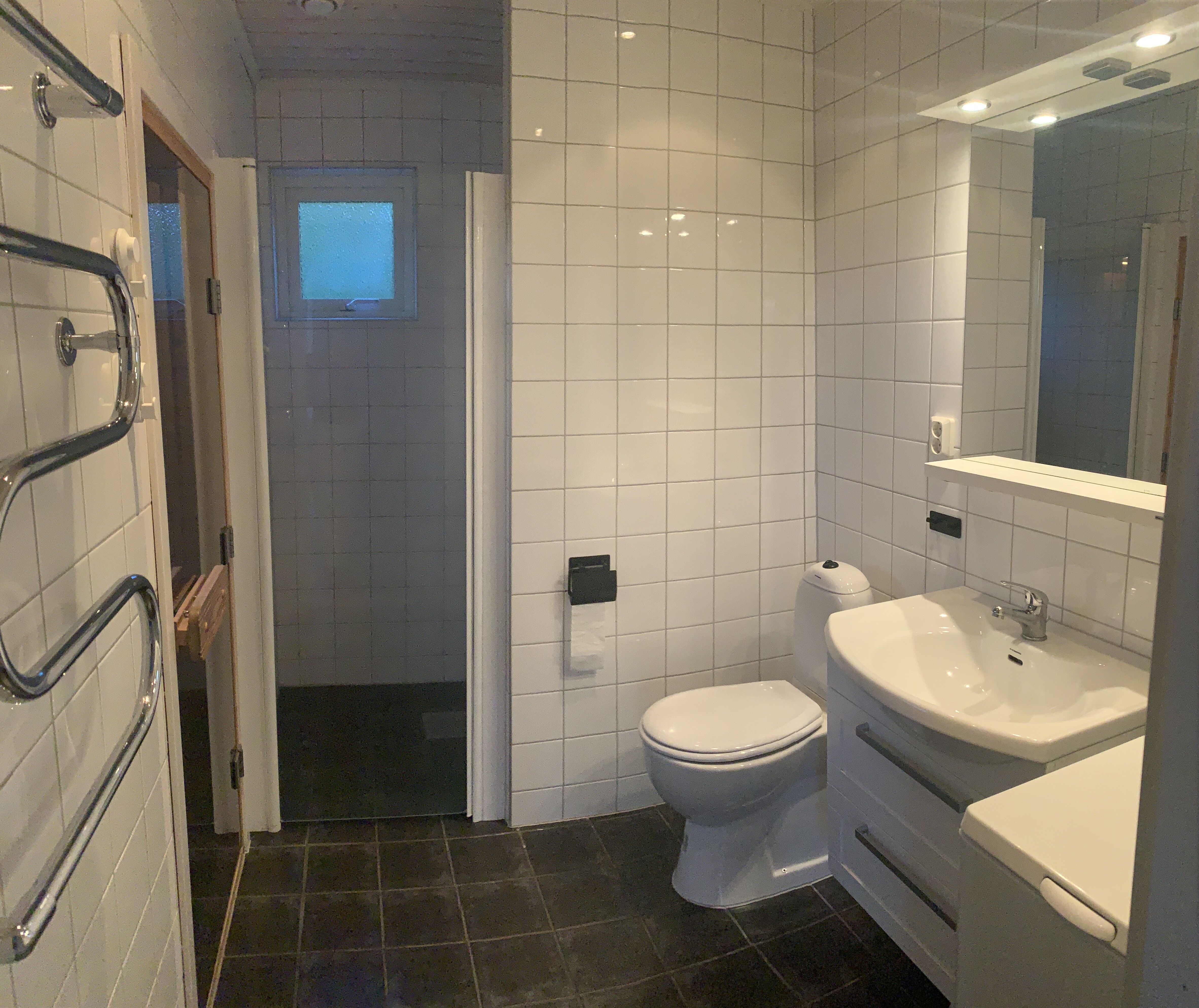 W obiekcie znajdują się dwie toalety i dwa prysznice. W jednej z łazienek dostępna jest również sauna. Pralka.