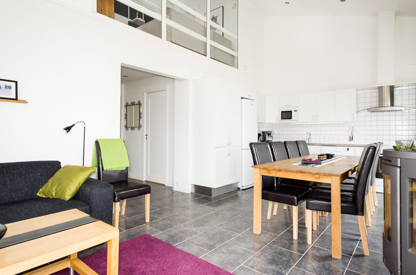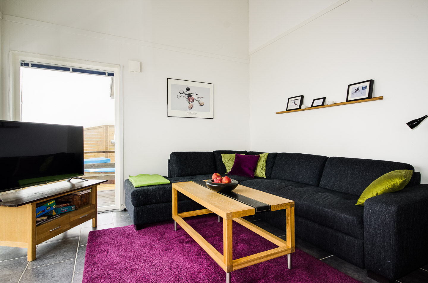 Allrum Det öppna allrummet har en braskamin, soffa, soffbord och TV. På övre plan finns ett separat TV-rum. Alla våra boenden är kopplade till kabel-tv.
