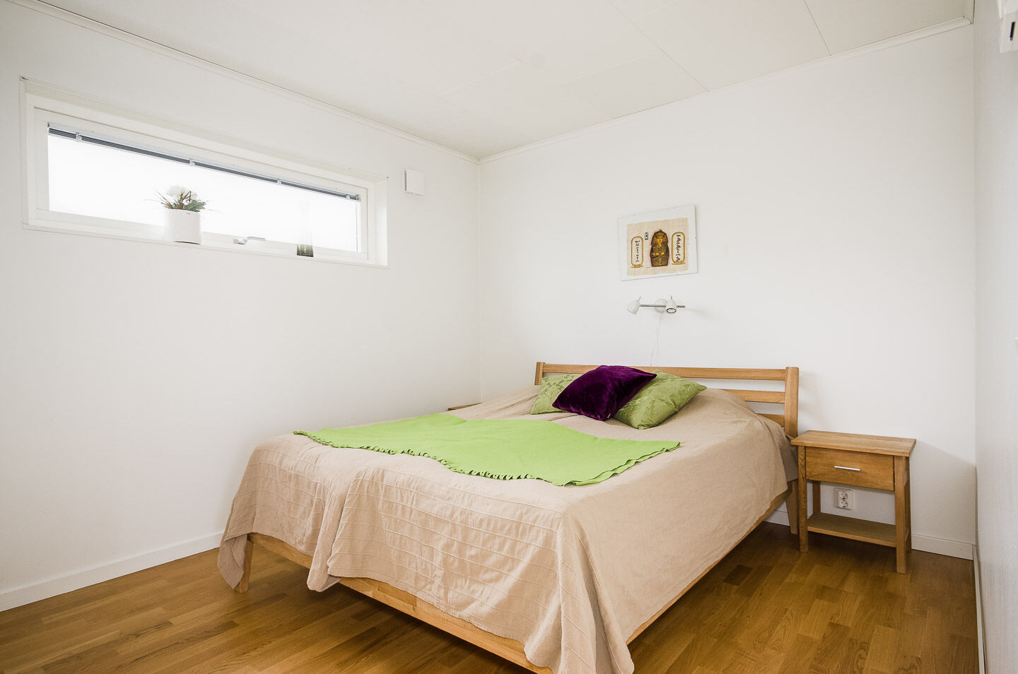 Sovrum På bottenplan finns tre sovrum; ett med dubbelsäng och två med en våningssäng/rum. På loftet finns ett sovrum med dubbelsäng. I TV-rummet på finns även en bäddsoffa med en extra sovplats.