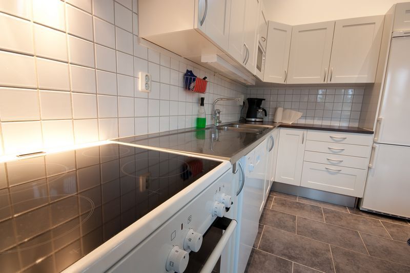 Dobrze wyposażona kuchnia posiada lodówkę z zamrażarką, kuchenkę z piekarnikiem, kuchenkę mikrofalową, ekspres do kawy i toster. Dostępna jest także zmywarka.