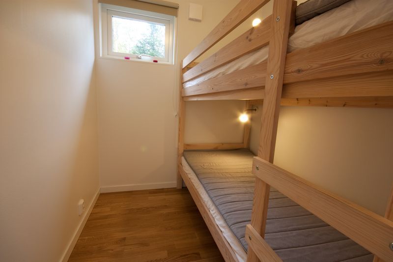 Na parterze znajdują się trzy sypialnie: dwie z łóżkiem piętrowym na pokój i jedna z łóżkiem podwójnym. Na poddaszu znajduje się sypialnia z łóżkiem rodzinnym.