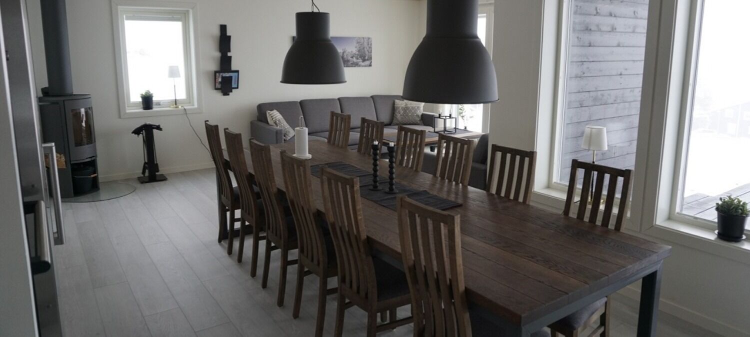 Przestronna i gustownie urządzona chatka z dużym salonem i kuchnią, solidnymi sypialniami oraz kominkiem. Obiekt ma 150 m² i oferuje 12 miejsc noclegowych w pięciu sypialniach. Dodatkowe dwa miejsca do spania na rozkładanej sofie na antresoli. Do dyspozycji są 2 łazienki z WC i prysznicem oraz sauna.