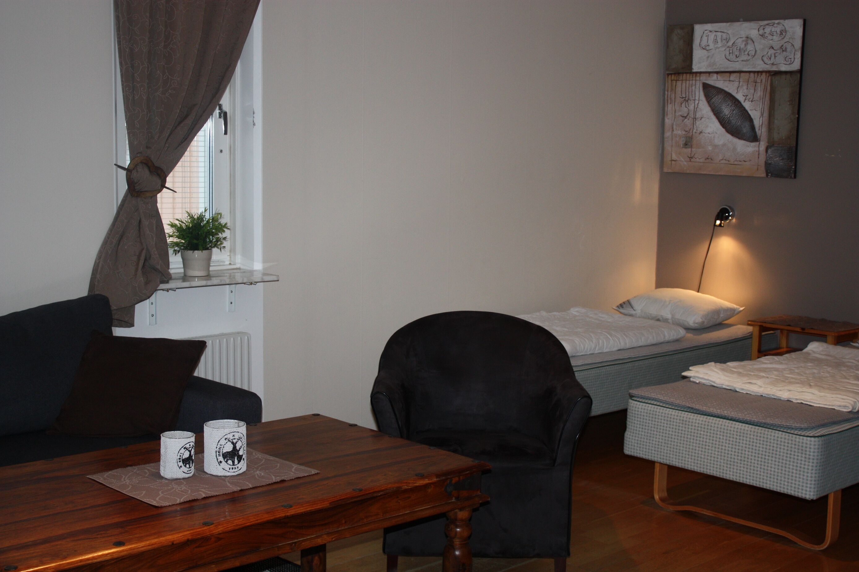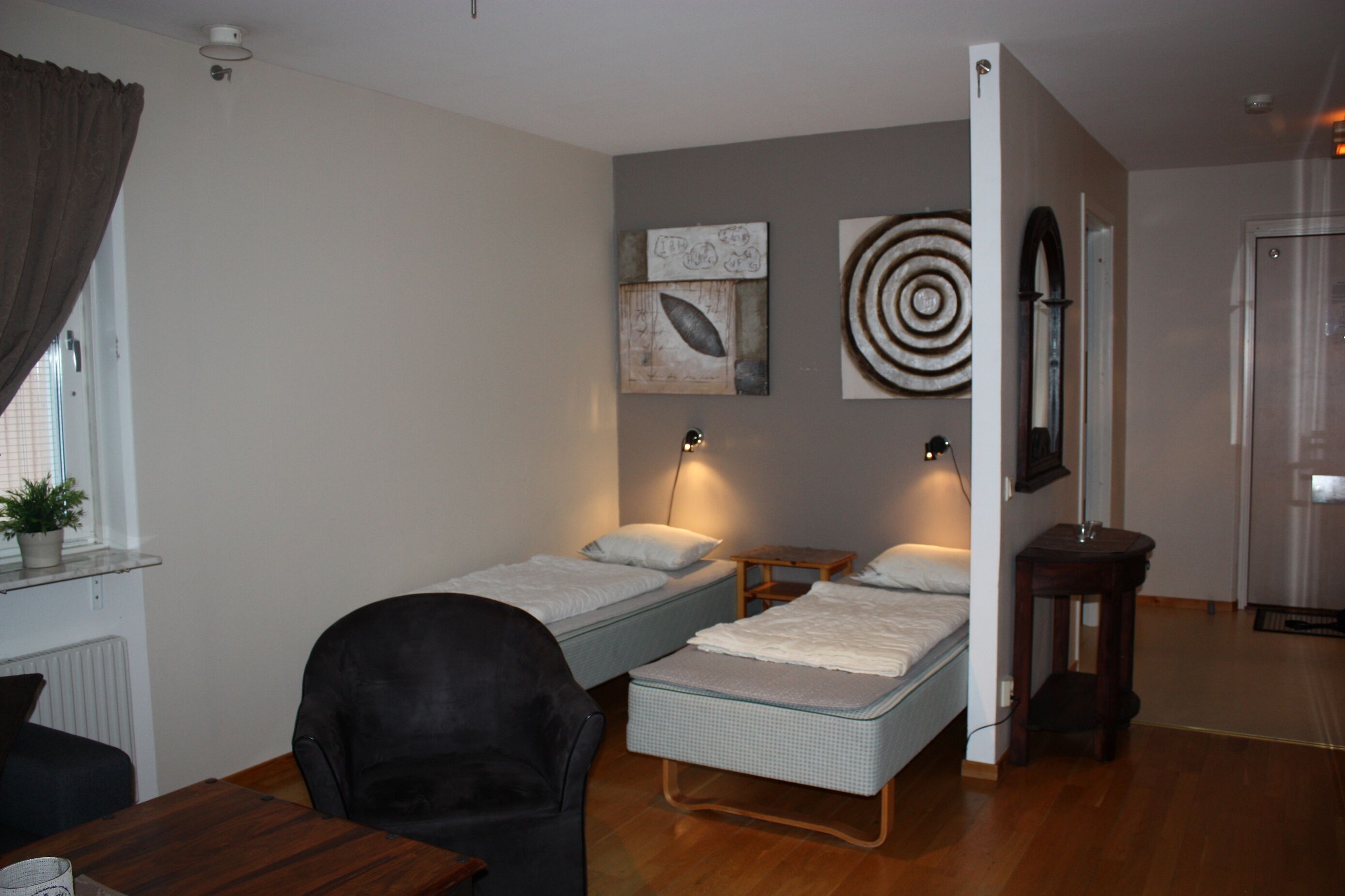 Sovrum I sovrummet (utan dörr) finns en våningssäng. I allrummet finns två enkelsängar.