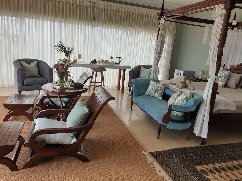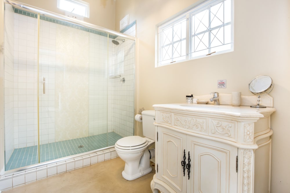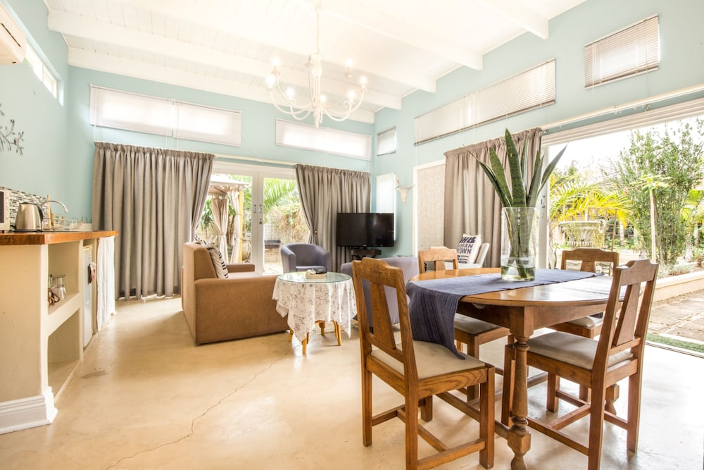 Udogodnienia biznesowe to centrum biznesowe, personel wielojęzyczny oraz przechowalnia bagażu. Płatne udogodnienia to transport z i na lotnisko. Dostępna jest także taka usługa jak bezpłatne parkowanie samodzielne. Do pokoju przylegają taras i ogród, z których roztacza się piękny widok. Dostępne są również takie udogodnienia rekreacyjne, jak basen odkryty. Ten dom gościnny oferuje również udogodnienia takie jak bezpłatny bezprzewodowy dostęp do internetu i grill. Hotel oferuje bezpłatne śniadanie angielskie codziennie od 6:30 do 9.- Opłata za późniejsze zameldowanie: 500 ZAR za zameldowanie od 20 do północ