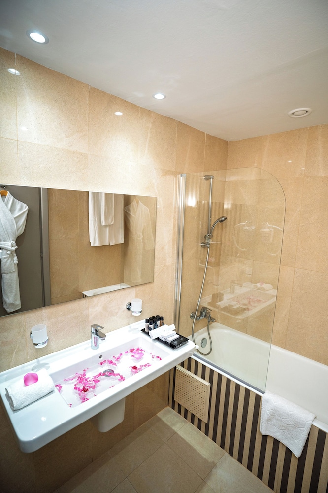 W czasie pobytu w obiekcie takim jak Verdi Tunis Beach Resort w mieście La Marsa (Gammarth) zamieszkasz 3 minut samochodem od atrakcji takiej jak Pole Golfowe The Residence i 5 minut od miejsca takiego jak Centrum Kultury w Gammarth Village. Ośrodek wczasowy (przy plaży) znajduje się 22,1 km od atrakcji takiej jak Ulica główna Habib Bourguiba i 4,6 km od miejsca takiego jak Marina Gammarth. Poczuj się jak w domu w 309 pokojach, których wyposażenie to minibar. Do pokoju przylega balkon. Bezpłatny bezprzewodowy dostęp do internetu zapewni łączność ze światem, a telewizja satelitarna — rozrywkę. Prywatna łazienka — wyposażenie: wanny lub prysznice, markowe przybory toaletowe i suszarki do włosów. Udogodnienia biznesowe to całodobowe centrum biznesowe, usługi pralni chemicznej oraz recepcja całodobowa. Ten obiekt typu ośrodek wczasowy oferuje następującą liczbę sal konferencyjnych: 11. Płatne udogodnienia to transport z i na lotnisko. Dostępna jest także taka usługa jak bezpłatne parkowanie samodzielne. Dostępne udogodnienia rekreacyjne to prywatna plaża oraz łaźnia parowa. Ten ośrodek wczasowy oferuje również udogodnienia takie jak bezpłatny bezprzewodowy dostęp do internetu, obsługa portierska i sklepy z pamiątkami i czasopismami. Ośrodek wczasowy: znajduje się tutaj restauracja CASCADE, gdzie wydawane są posiłki takie jak obiad i kolacja. Jedzenie i picie serwują również miejsca takie jak kawiarnia i do Twojej dyspozycji pozostaje także całodobowa obsługa pokojowa. Ożywcze napoje znajdziesz w jednym z lokali: bar/salon klubowy i bar plażowy.