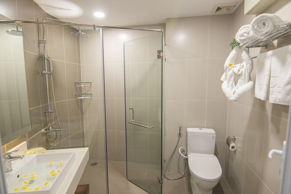 W czasie pobytu w obiekcie takim jak Mermaid Seaside Hotel Vung Tau w mieście Vung Tau znajdziesz się na plaży, jedynie 3 minut piechotą od atrakcji takiej jak Thanh Duc Me i 5 minut piechotą od miejsca takiego jak Plaża Mulberry. Hotel (przy plaży) znajduje się 7,2 km od atrakcji takiej jak Back Beach (plaża) i 29,3 km od miejsca takiego jak Plaża Long Hai. Poczuj się jak w domu w 64 klimatyzowanych pokojach, których wyposażenie to lodówka i minibar. Bezpłatny bezprzewodowy dostęp do internetu zapewni łączność ze światem, a 43-cal. telewizor płaskoekranowy i telewizja kablowa — rozrywkę. Wyposażenie łazienki: prysznic (prysznic z deszczownicą) i bidety. Udogodnienia obejmują telefon oraz sejfy i biurka. Odległości są podane z dokładnością do 0,1 kilometra.