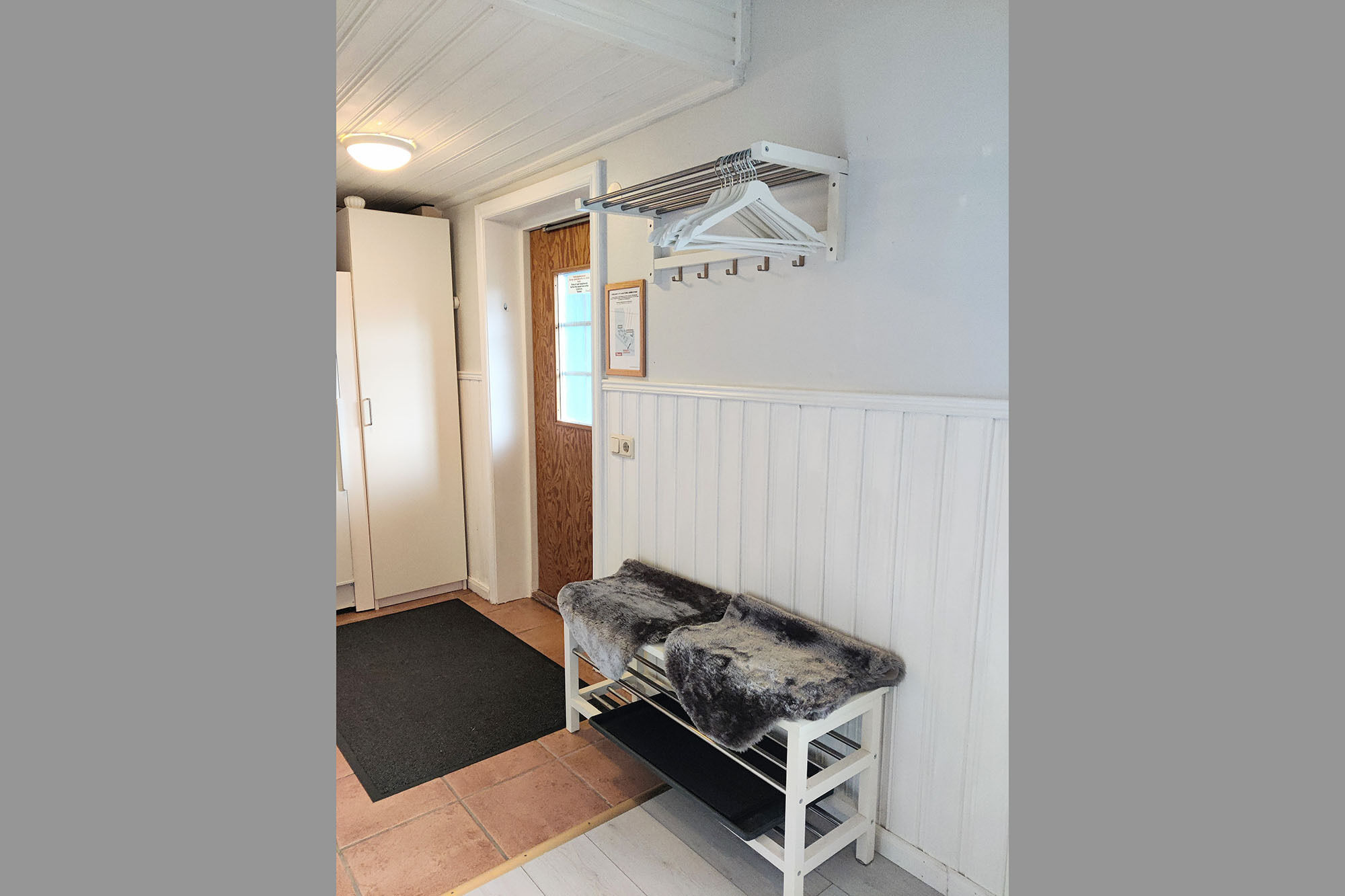 Sovrum I boendet finns två sovrum och ett loft. Ett sovrum har dubbelsäng och ett har våningssäng där nederslafen är 120 cm. Lofttrappa till sovloft med två våningssängar. Stugan rymmer totalt 8 bäddar och en resespjälsäng.