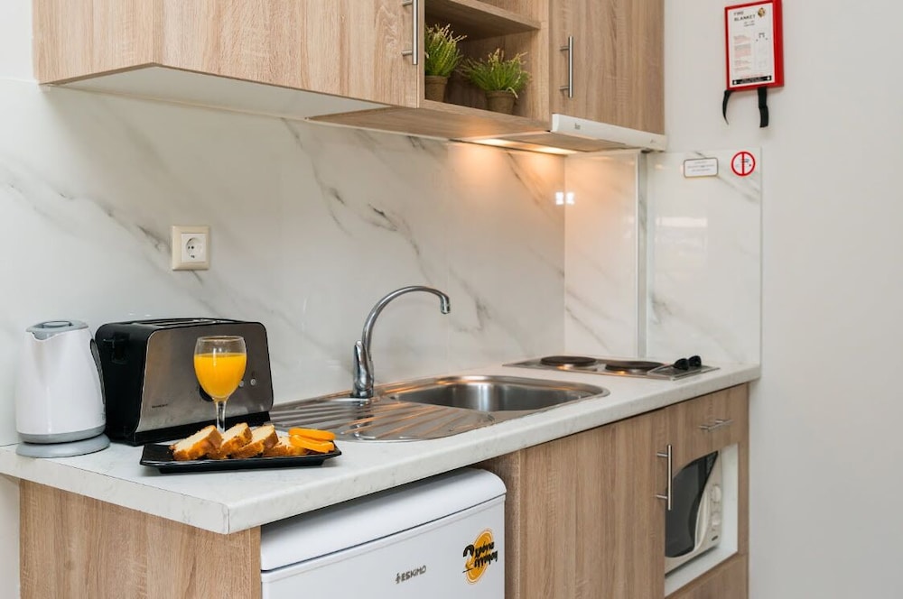 W czasie pobytu w obiekcie takim jak Kalidonio Studios w mieście Zakynthos zamieszkasz 1 minut samochodem od atrakcji takiej jak Plaża Laganas i 7 minut od miejsca takiego jak Kalamaki Beach. Aparthotel znajduje się 11 km od atrakcji takiej jak Tsilivi Beach i 18,6 km od miejsca takiego jak Plaża Alykanas. Poczuj się jak w domu w 22 klimatyzowanych pokojach, których wyposażenie to aneksy kuchenne (piekarniki i płyta kuchenna). Do pokoju przylega umeblowany balkon lub patio. Rozrywkę zapewni telewizor płaskoekranowy. Udogodnienia obejmują telefon oraz biurka i minibary. Odległości są podane z dokładnością do 0,1 kilometra.