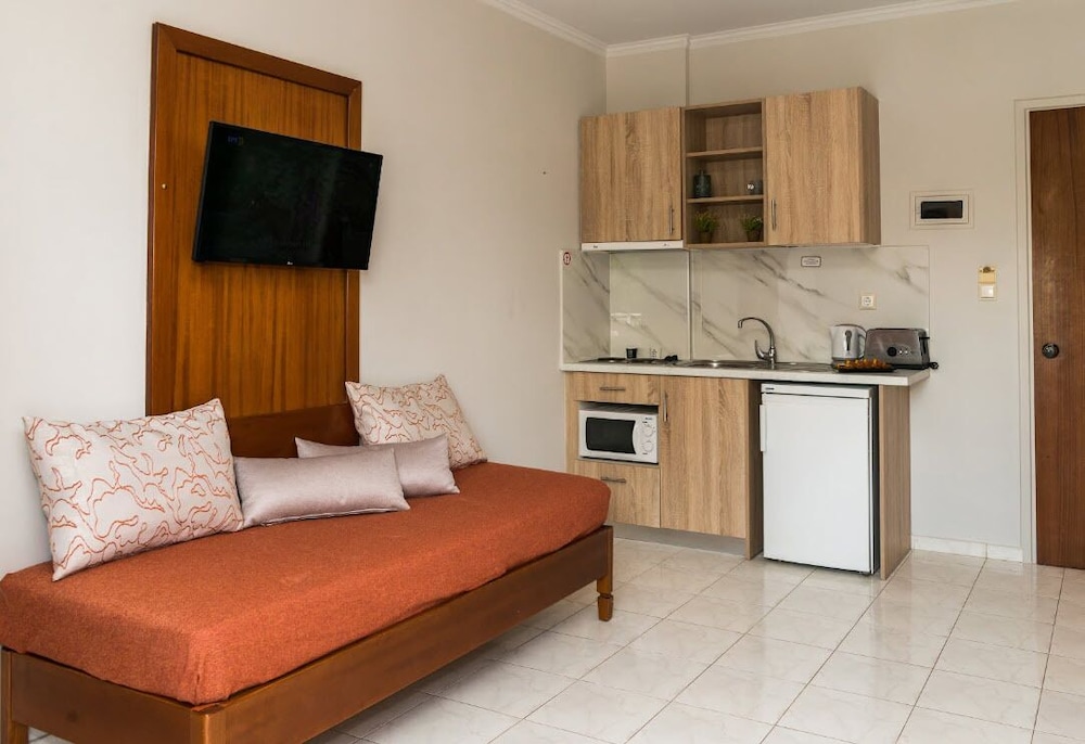 Recepcja jest czynna w określonych godzinach. Udogodnienia na miejscu to bezpłatne parkowanie samodzielne. Dostępne udogodnienia rekreacyjne to sezonowy basen odkryty i rowery do wypożyczenia. Ten aparthotel oferuje również udogodnienia takie jak bezpłatny bezprzewodowy dostęp do internetu i obsługa portierska. W obiekcie Kalidonio Studios apetyt gości zaspokoi bar zakąskowy/delikatesy. Ożywcze napoje znajdziesz w jednym z lokali: bar/salon klubowy.W obiekcie należy dokonać następujących opłat. Opłaty mogą obejmować obowiązujące podatki: