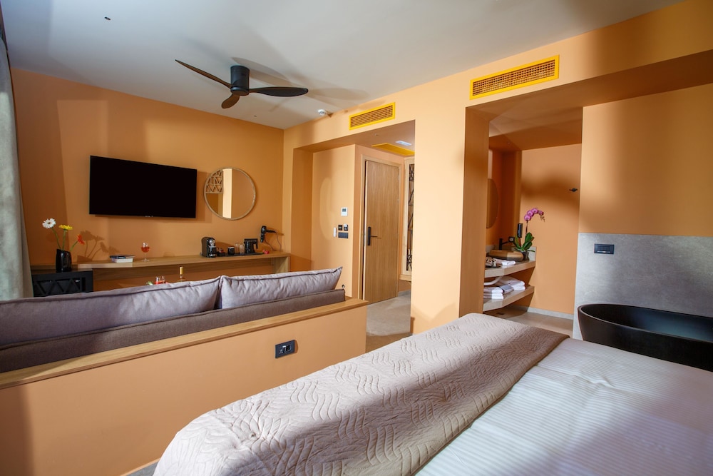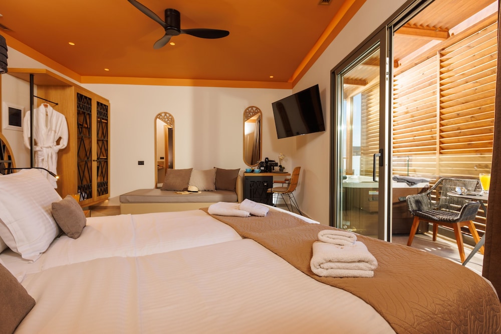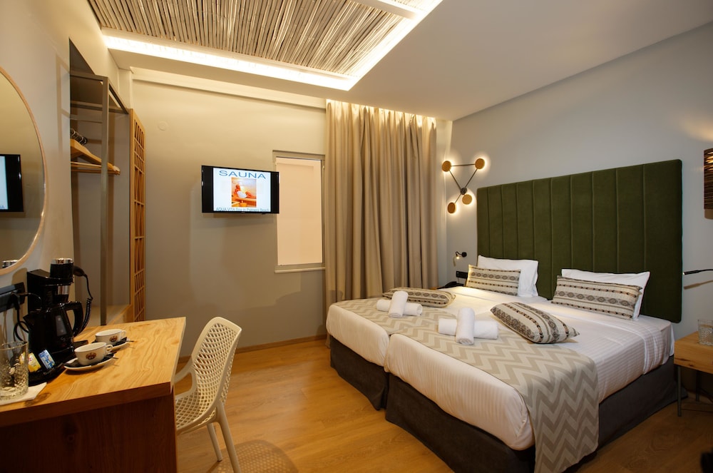 W czasie pobytu w obiekcie takim jak Palmera Beach - Adults Only w mieście Hersonissos zamieszkasz na plaży, 15 minut samochodem od atrakcji takich jak Park wodny Starbeach i Plaża w Stalidzie. Hotel (przy plaży) znajduje się 0,6 km od atrakcji takiej jak Sarakino i 0,8 km od miejsca takiego jak Akwarium Aquaworld. Poczuj się jak w domu w 147 oryginalnie udekorowane pokojach, których wyposażenie to lodówka i telewizor płaskoekranowy. Bezpłatny bezprzewodowy dostęp do internetu zapewni łączność ze światem, a telewizja satelitarna — rozrywkę. Wyposażenie łazienki: wanny lub prysznice i suszarki do włosów. Udogodnienia obejmują sejfy oraz sprzątanie codziennie. Udogodnienia biznesowe to usługi pralni chemicznej, recepcja całodobowa oraz personel wielojęzyczny. Udogodnienia na miejscu to bezpłatne parkowanie samodzielne. Zrelaksuj się w spa, które oferuje masaż. Dostępne udogodnienia rekreacyjne to siłownia, jacuzzi oraz sauna. Ten hotel w stylu śródziemnomorskim oferuje takie udogodnienia jak bezpłatny bezprzewodowy dostęp do internetu, pomoc w organizacji biletów/wycieczek oraz korzystanie z pobliskiego centrum fitness po cenie zniżkowej. W obiekcie takim jak hotel do dyspozycji gości są restauracja, a także obsługa pokojowa (w określonych godzinach). Zrelaksuj się po całym dniu w barze/salonie klubowym. Śniadanie na zamówienie jest podawane codziennie od 7:30 do 10 za opłatą.