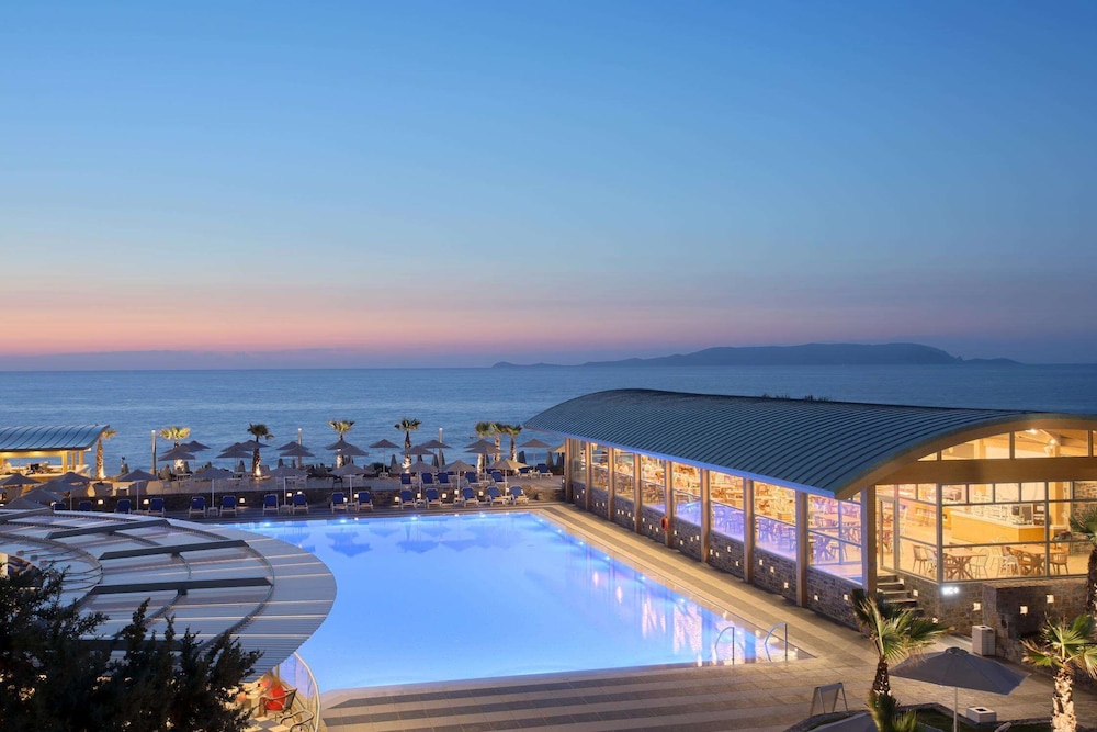 W czasie pobytu w obiekcie takim jak Arina Beach Resort w mieście Hersonissos zamieszkasz na plaży, 15 minut samochodem od atrakcji takich jak Port Heraklion i Muzeum Archeologiczne w Heraklionie. Obiekt (all inclusive) znajduje się 21,5 km od atrakcji takiej jak Plaża w Stalidzie i 14,1 km od miejsca takiego jak Pałac Knossos. Poczuj się jak w domu w 295 klimatyzowanych pokojach, których wyposażenie to telewizor LCD. Wyposażenie łóżek to pillowtop oraz pościel premium. Do pokoju przylega umeblowany balkon lub patio. Bezpłatny bezprzewodowy dostęp do internetu zapewni łączność ze światem. Wyposażenie łazienki: prysznic i suszarki do włosów. Udogodnienia biznesowe to komputer stacjonarny, ekspresowe wymeldowanie oraz usługi pralni chemicznej. Udogodnienia na miejscu to bezpłatne parkowanie samodzielne. Zrelaksuj się w spa, które oferuje masaż, zabiegi na ciało i zabiegi na twarz. Dostępne udogodnienia rekreacyjne to bezpłatny dostęp do parku wodnego, odkryte korty tenisowe oraz łaźnia parowa. Ten obiekt oferuje również udogodnienia takie jak bezpłatny bezprzewodowy dostęp do internetu, sala/salon gier i sklepy z pamiątkami i czasopismami. Spróbuj kuchni takiej jak kuchnia międzynarodowa w restauracji Ariadne, jednej z wielu w obiekcie takim jak obiekt, gdzie możesz znaleźć 2 restauracje i kawiarnię. Codziennie hotel oferuje bezpłatne przyjęcie. Ożywcze napoje znajdziesz w jednym z lokali: bar przy basenie i 3 bary/salony klubowe. Hotel oferuje bezpłatne śniadanie w formie bufetu codziennie od 7:30 do 10:30. Następujące udogodnienia są sezonowo nieczynne każdego roku. Będą one zamknięte od 4 listopada do 14 marca: