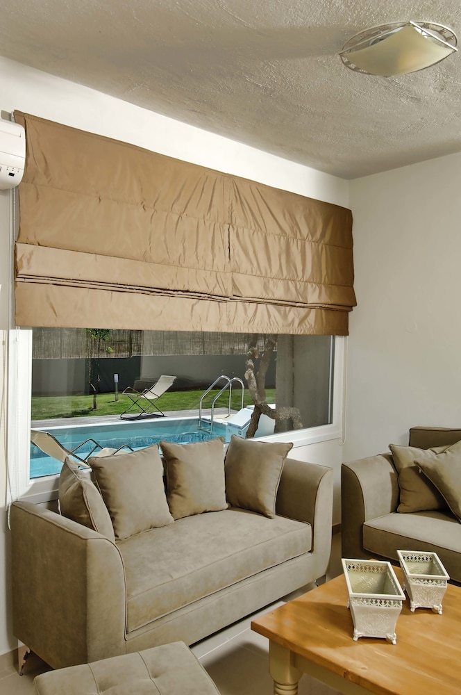 W czasie pobytu w obiekcie takim jak Paradise Island Villas w mieście Hersonissos zamieszkasz niedaleko plaży, 5 minut samochodem od atrakcji takiej jak Port w Hersonissos i 5 minut od miejsca takiego jak Park wodny Starbeach. Hotel (w stylu luksusowym) znajduje się 11,4 km od atrakcji takiej jak Plaża w Stalidzie i 26,3 km od miejsca takiego jak Pałac Knossos. Poczuj się jak w domu w 12 oryginalnie udekorowane pokojach, których wyposażenie to prywatne baseny i telewizor plazmowy. Do pokoju przylega umeblowany balkon lub patio. Kuchnie — wyposażenie: pełnowymiarowa lodówka i zamrażarka, piekarniki i płyta kuchenna. Bezpłatny bezprzewodowy dostęp do internetu zapewni łączność ze światem, a telewizja satelitarna — rozrywkę. Prywatna łazienka — wyposażenie: wanna i prysznic osobno, wanny z hydromasażem i markowe przybory toaletowe. Udogodnienia biznesowe to usługi pralni chemicznej, przechowalnia bagażu oraz pralnia. Płatne udogodnienia to transport z i na lotnisko (całą dobę). Dostępna jest także taka usługa jak bezpłatne parkowanie samodzielne. Zrelaksuj się w spa, które oferuje masaż, zabiegi na ciało i zabiegi na twarz. Dostępne udogodnienia rekreacyjne to 2 baseny odkryte, odkryty kort tenisowy oraz centrum fitness. Ten hotel oferuje udogodnienia takie jak bezpłatny bezprzewodowy dostęp do internetu, obsługa portierska i grill. Hotel: znajduje się tutaj restauracja, gdzie serwowane są obiad i kolacja. Możesz zostać w pokoju i skorzystać z obsługi pokojowej w określonych godzinach. Ożywcze napoje znajdziesz w jednym z lokali: bar/salon klubowy i bar przy basenie. Śniadanie na zamówienie jest podawane codziennie od 9 do południa za opłatą.