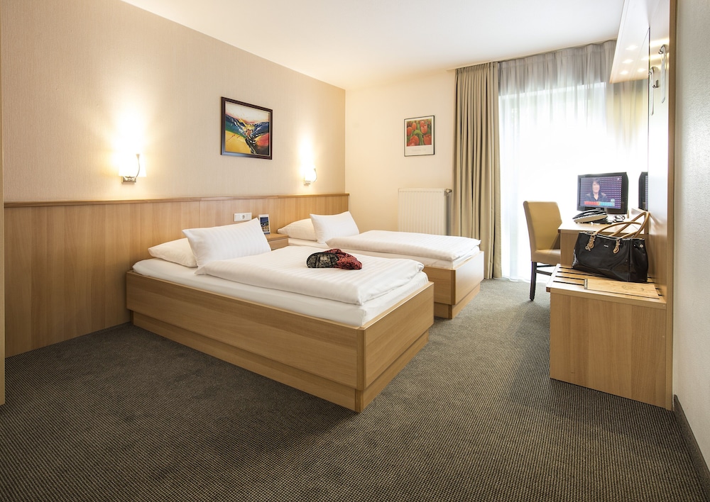 W czasie pobytu w obiekcie takim jak Hotel Am Wald zamieszkasz w samym centrum miasta Monheim, 15 minut od atrakcji takich jak Hala sportowo-widowiskowa Mitsubishi Electric Halle i Ren. Hotel znajduje się 26,6 km od atrakcji takiej jak Katedra w Kolonii i 22,1 km od miejsca takiego jak Konigsallee. Poczuj się jak w domu w 96 klimatyzowanych pokojach, których wyposażenie to minibar. Bezpłatny bezprzewodowy dostęp do internetu zapewni łączność ze światem, a telewizja satelitarna — rozrywkę. Wyposażenie łazienki: prysznic i suszarki do włosów. Udogodnienia obejmują telefon oraz sejfy i biurka. Odległości są podane z dokładnością do 0,1 kilometra.