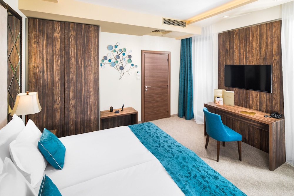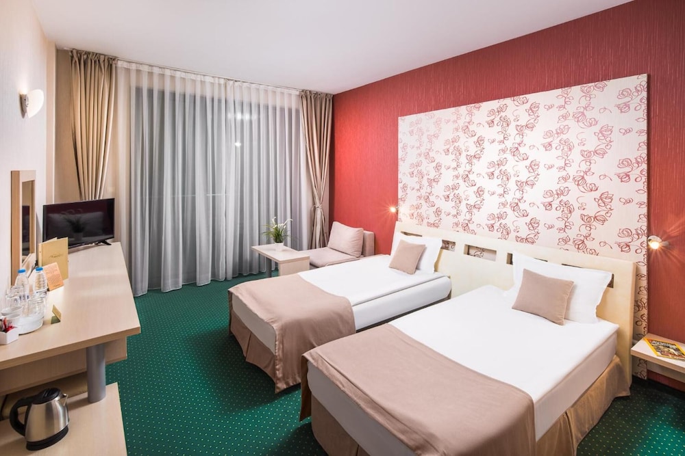 W czasie pobytu w obiekcie takim jak Park & Spa Hotel Markovow mieście Rodopi zamieszkasz 15 minut samochodem od atrakcji takich jak Karuzela BRC i Bułgarska Biblioteka Narodowa im. Iwana Wazowa. Hotel (z atmosferą przyjazną rodzinom) znajduje się 8,7 km od atrakcji takiej jak Mall Markovo Tepe i 9,1 km od miejsca takiego jak Dom Lamartine'a. Poczuj się jak w domu w 110 klimatyzowanych pokojach, których wyposażenie to minibar i telewizor LCD. Bezpłatny bezprzewodowy dostęp do internetu zapewni łączność ze światem, a telewizja kablowa — rozrywkę. Prywatna łazienka — wyposażenie: bezpłatne przybory toaletowe i suszarki do włosów. Udogodnienia obejmują telefon oraz biurka i oddzielne strefy wypoczynkowe. Udogodnienia biznesowe to recepcja całodobowa, przechowalnia bagażu oraz pralnia. Płatne udogodnienia to transport z i na lotnisko. Dostępna jest także taka usługa jak bezpłatne parkowanie samodzielne. Zrelaksuj się w spa, które oferuje masaż. Dostępne udogodnienia rekreacyjne to basen kryty, sauna oraz centrum fitness. Ten hotel oferuje również udogodnienia takie jak bezpłatny bezprzewodowy dostęp do internetu, sala/salon gier i salon fryzjerski. Hotel: znajduje się tutaj restauracja, w której jest świetnie wyposażony bar/salon klubowy. Możesz też zostać w pokoju i skorzystać z obsługi pokojowej w określonych godzinach. Hotel oferuje bezpłatne śniadanie w formie bufetu codziennie od 7:30 do 10.